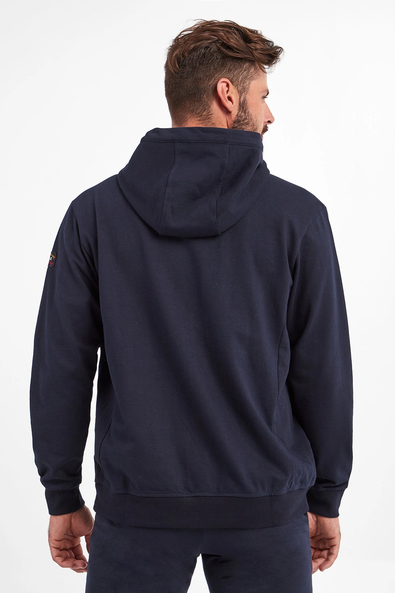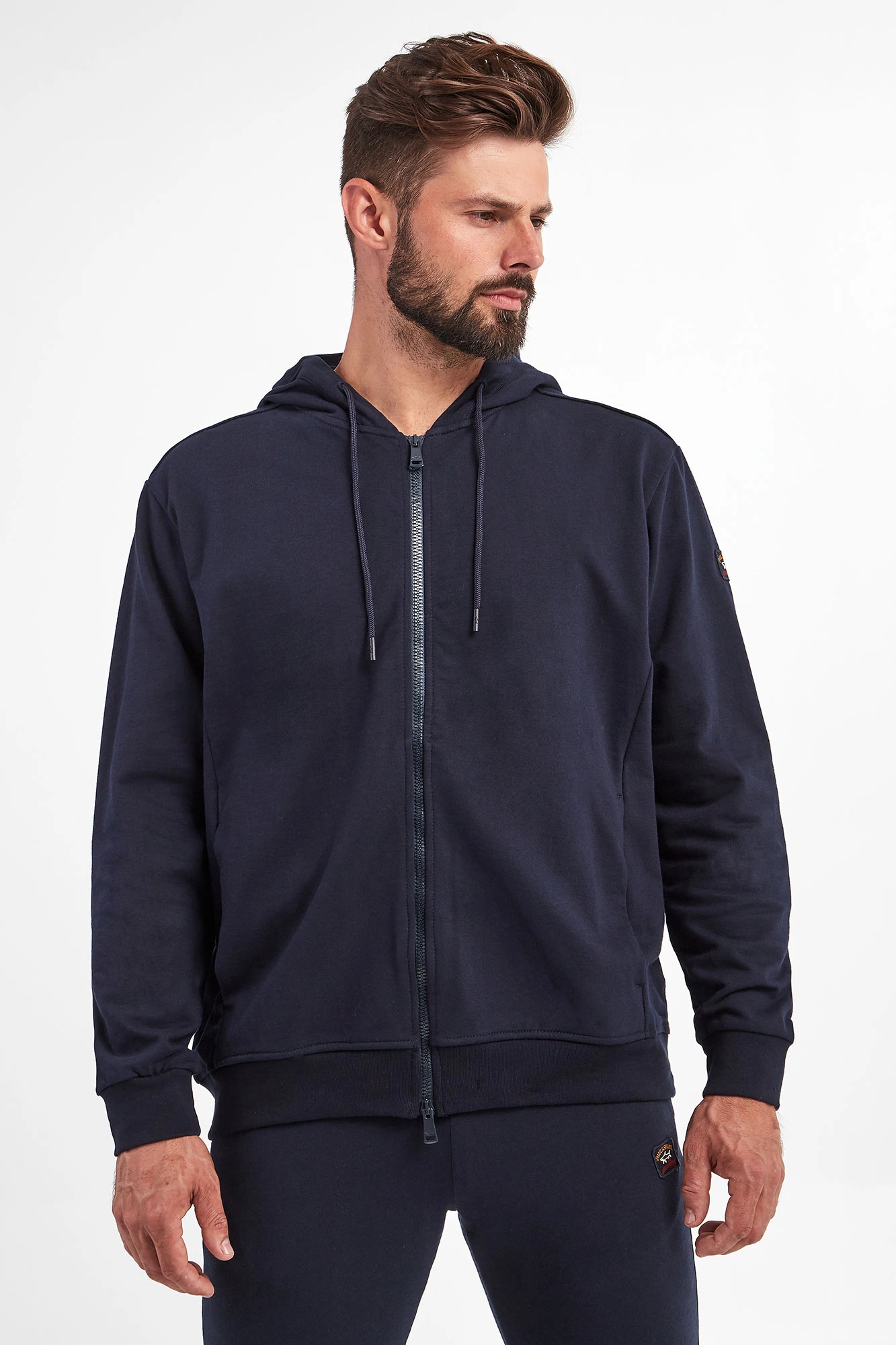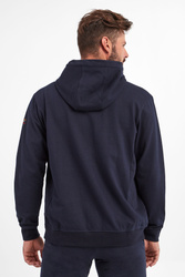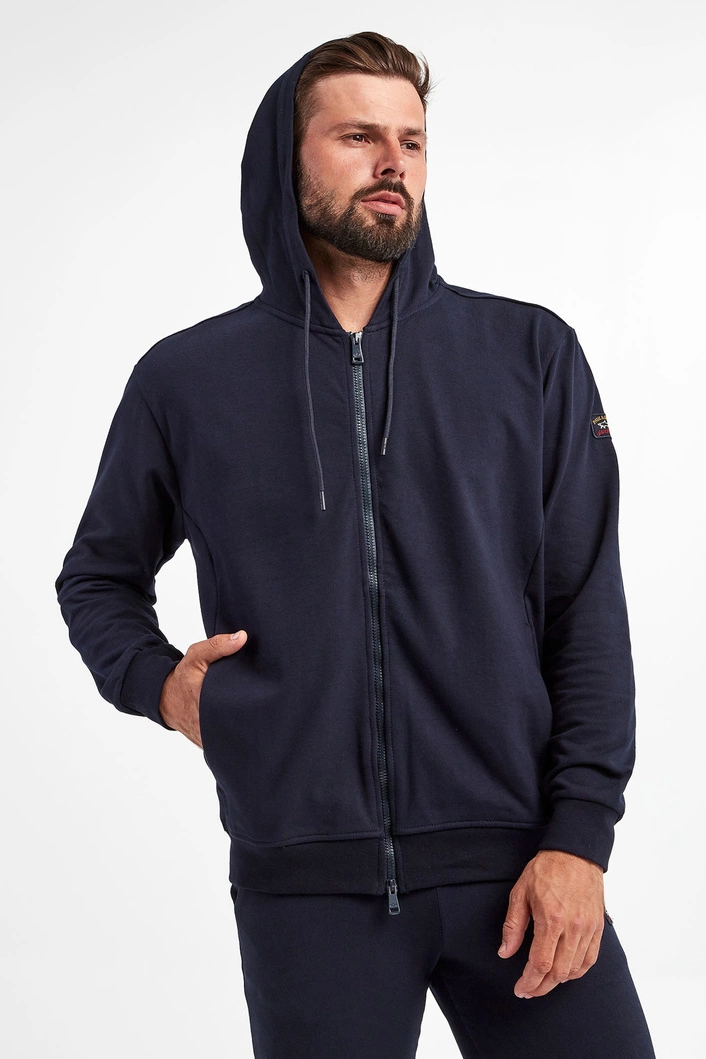 Bluza z kapturem marki Paul&Shark w kolorze granatowym. Fason typu regular fit. Zapinana na podwójny zamek z sygnowaniem. Na lewym rękawie naszywka z logo marki. Na przodzie dwie kieszenie. Rękawy i dół zakończone ściągaczem prążkowanym. Kaptur z troczkami zakończonymi sygnowaniem. Bluza wykonana z czystej bawełny.