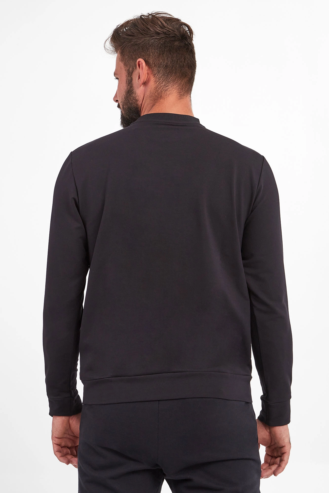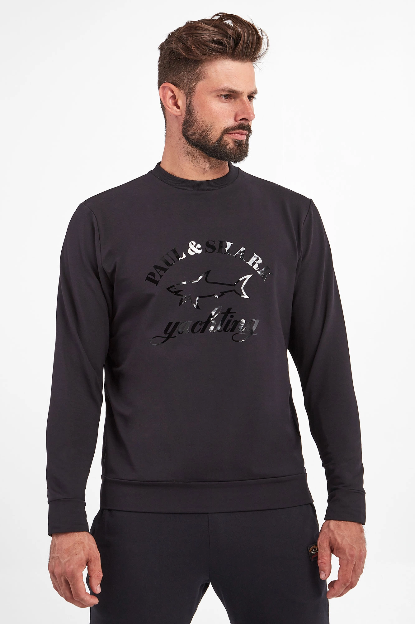 Bluza marki Paul&Shark w kolorze czarnym. Na froncie gumowany, połyskujący nadruk z logo marki. Fason typu regular. Dekolt o-neck zakończony ściągaczem prążkowanym. Długie rękawy i dół wykończone elastycznym ściągaczem gładkim. Bluza wykonana lekkiej i wygodnej tkaniny.