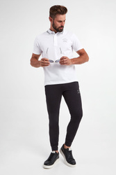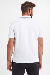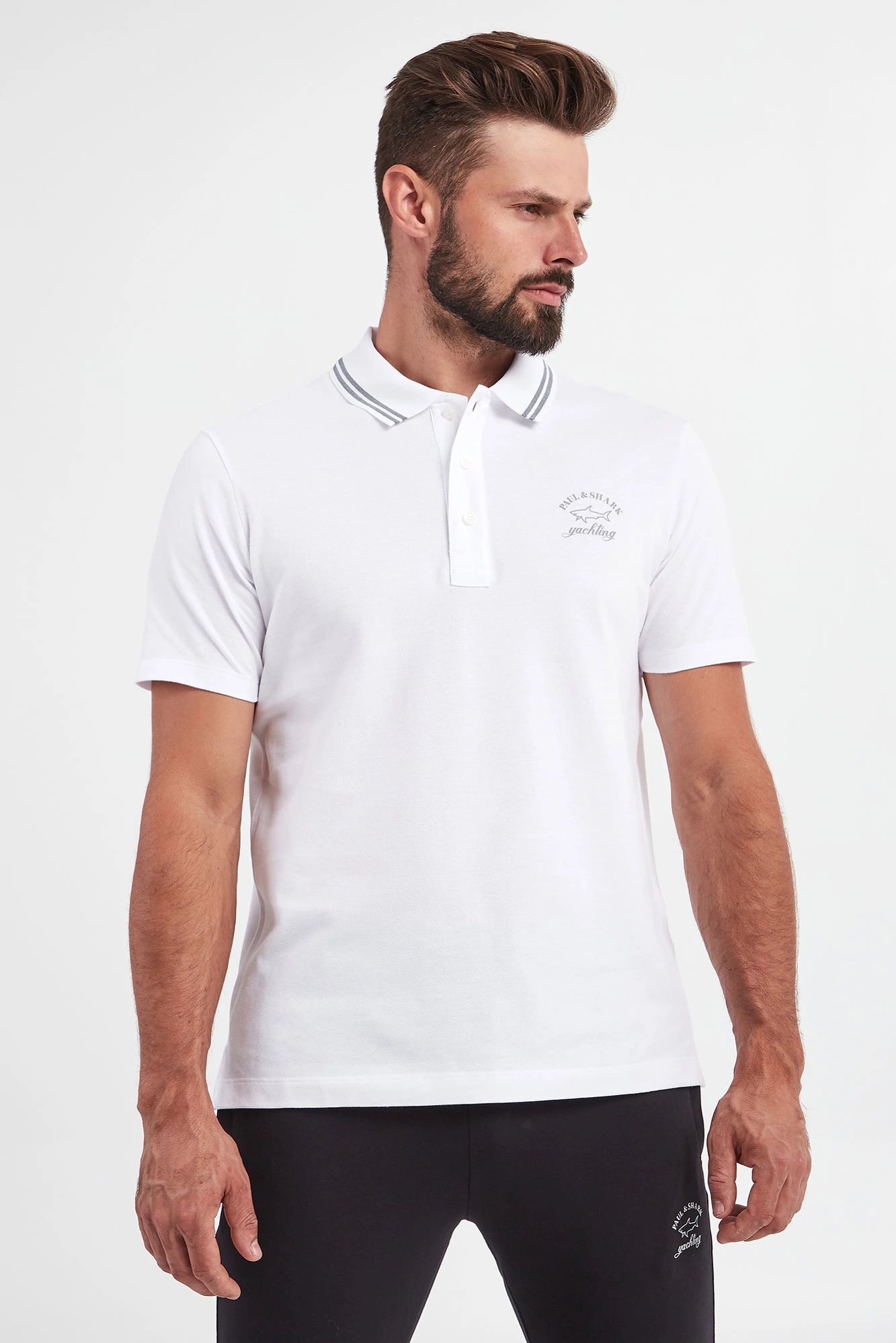Polo marki Paul&Shark w białym kolorze. Z boku szare logo. Klasyczny kołnierz zapinany za pomocą opalizujących, sygnowanych guzików i wykończony szarą lamówką. Krótkie rękawy i dół zakończone lamówką. Po bokach rozcięcia. Fason regular fit. Wykonane z czystej bawełny.