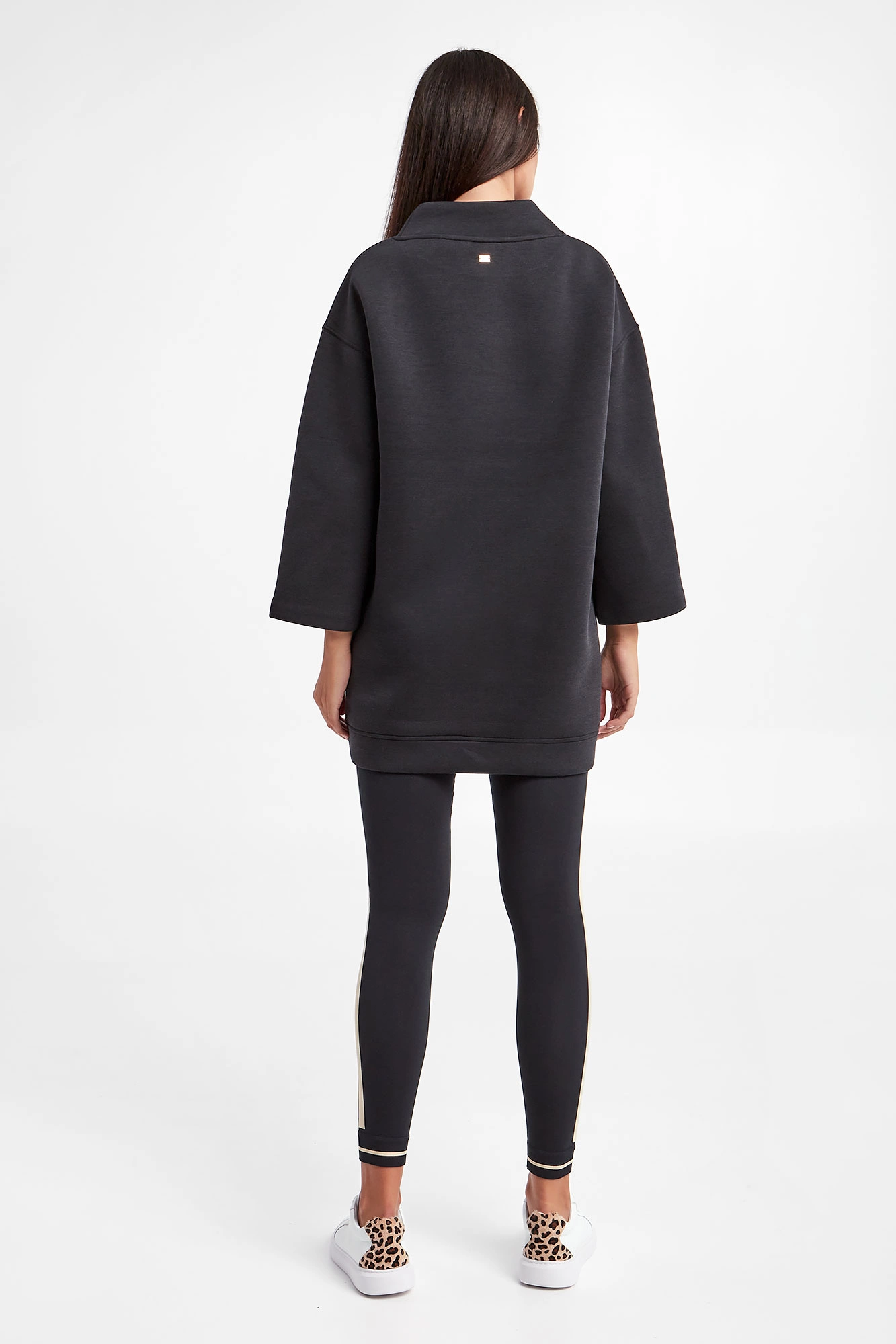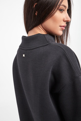 Bluza marki Joop! w grafitowym kolorze. Fason relaxed fit. Dekolt ze stójką. Rękawy 3/4 oraz dół wykończony lamówką. Z tyłu logowana zawieszka. Wykonana z bardzo miękkiej, gładkiej tkaniny. Uniwersalna baza do każdej, casualowej stylizacji.