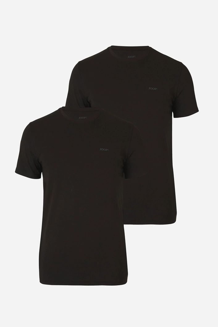 Dwupak t-shirtów w czarnym kolorze marki Joop! Klasyczny krój o dopasowanym fasonie. Dekolt typu o-neck. Z przodu niewielkie logo w szarym kolorze. Wykonane z bawełnianej tkaniny z dodatkiem elastanu.