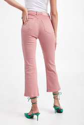 Spodnie marki Marella Monochrome w kolorze brudnego różu. Zapinane na zamek i guzik. Model z pięcioma kieszeniami. W pasie szlufki. Spodnie o kroju straight, z wysokim stanem. Nogawki wykończone lamówką.