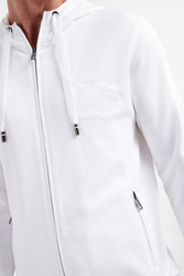 Bluza z kapturem marki Dolce & Gabbana w białym kolorze. Z boku monogram. Długie rękawy i dół zakończone ściągaczami. Dwie boczne, zamykane kieszenie. Kaptur regulowany za pomocą troczków. Fason regular fit. Wykonana z czystej bawełny.