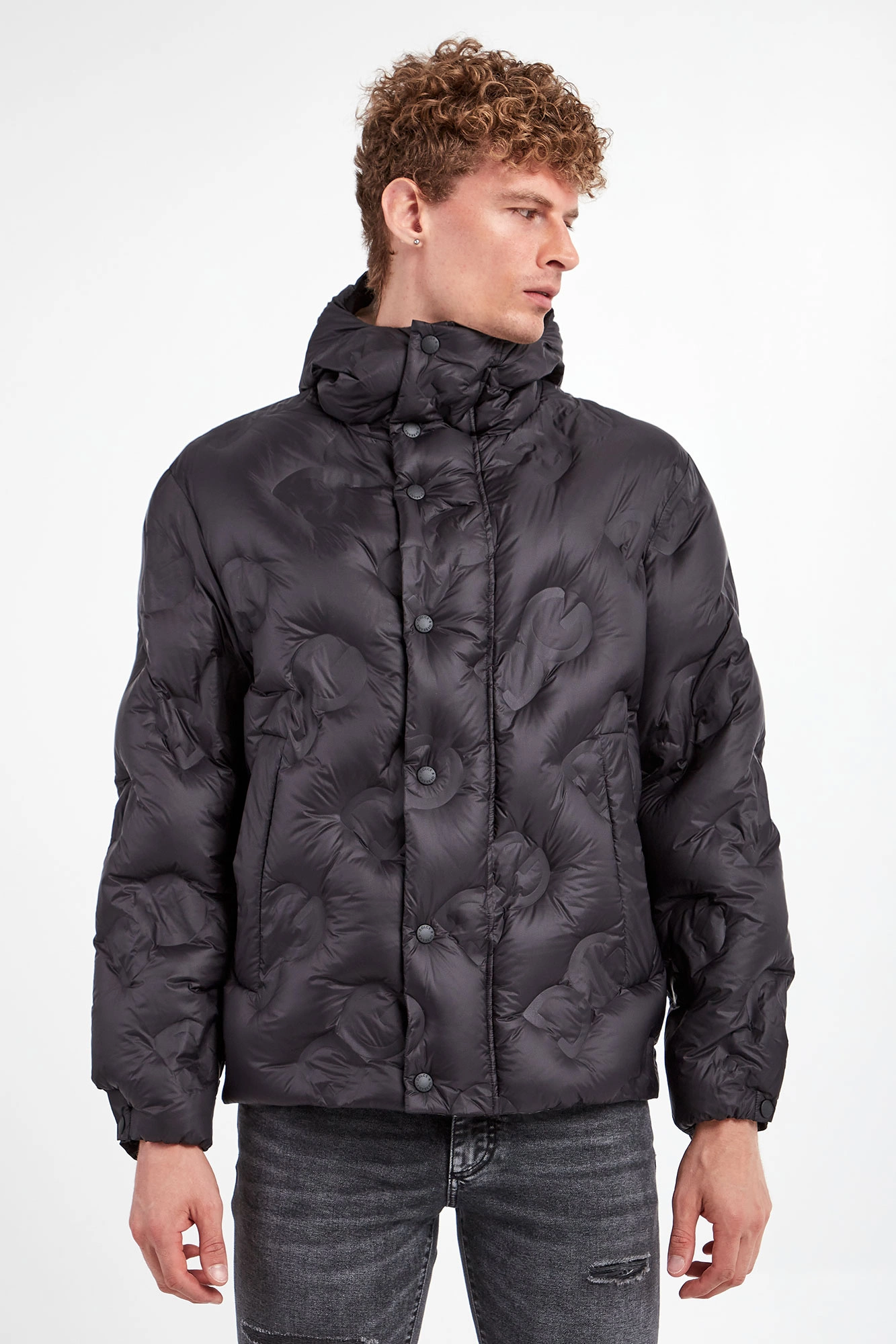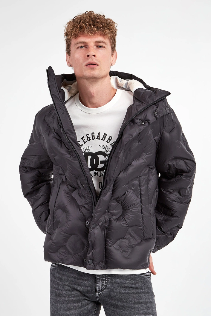 Pikowana kurtka puchowa marki Dolce & Gabbana w czarnym kolorze. Z kapturem. Tłoczony monogram. Fason typu regular fit. Zapinana za pomocą zamka i nap. Model z dwoma kieszeniami zapinanymi za pomocą zamka. Długie rękawy regulowane za końcu za pomocą sygnowanej napy. Naturalne wypełnienie.