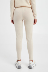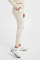 Dzianinowe spodnie marki Max Mara Leisure w kremowym kolorze. Wykonane z połączenia niezwykle ciepłych włókien wełny i kaszmiru. Model z dwiema kieszeniami. W pasie ściągacz z troczkami, z możliwością regulacji. Nogawki wykończone prążkowanym ściągaczem. Fason typu jogger.