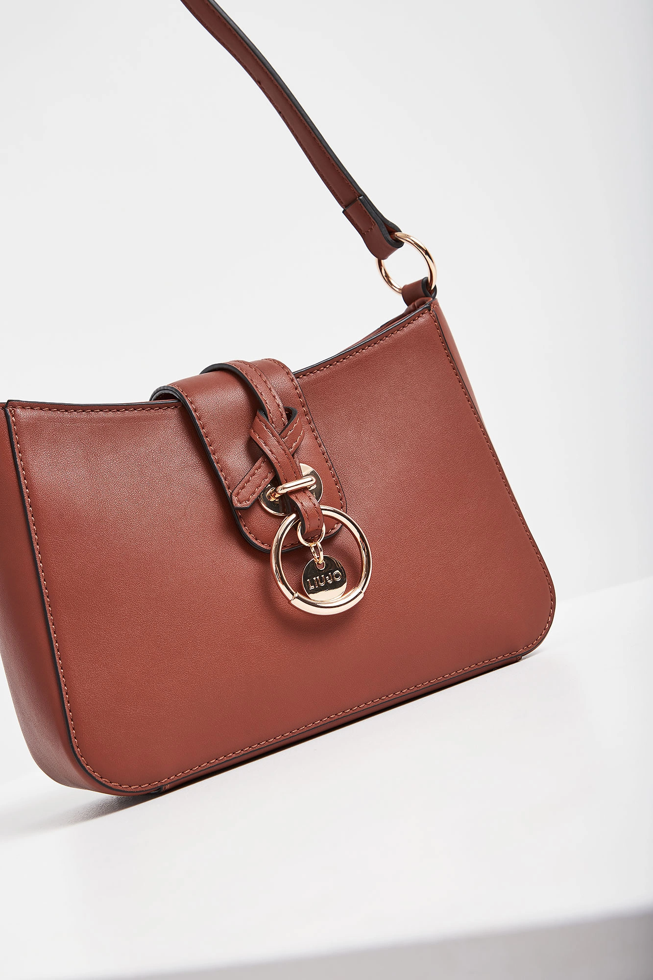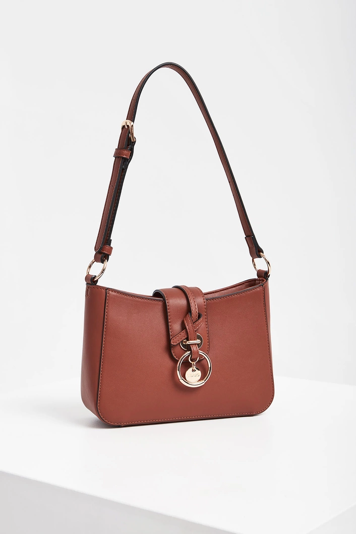Torebka z ekoskóry marki Liu Jo w kolorze brązowym. Model pochodzi z linii "Liu Jo Better", która wspiera zrównoważoną modę. Zapinana na zamek i pasek z ozdobnie wykończonym zapięciem magnetycznym. Do noszenia na regulowanym pasku. Okucia torebki w kolorze złotym.