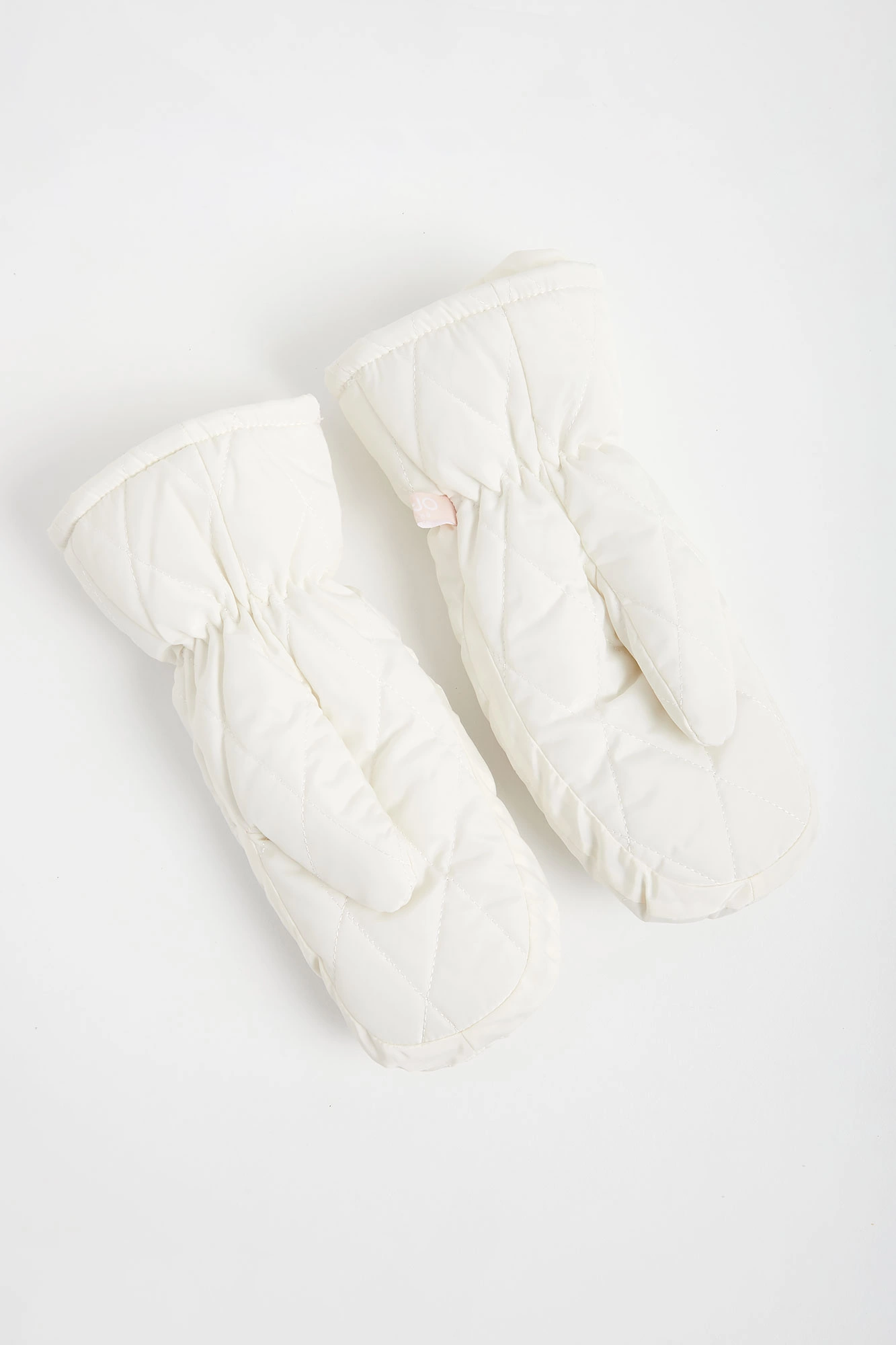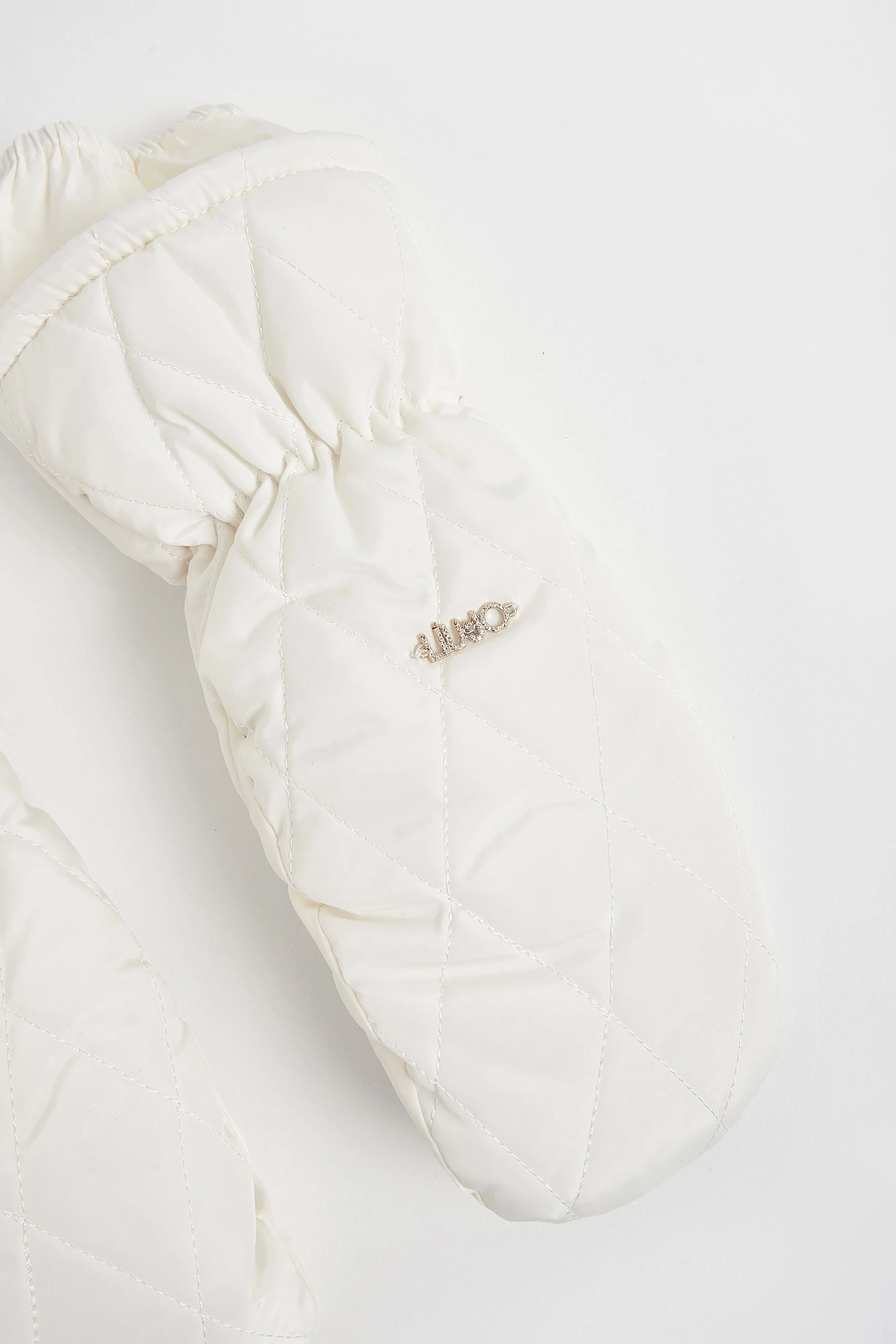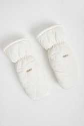 Rękawiczki marki Liu Jo w kolorze ecru. Dwupalczasty model. Całość pikowana. Na froncie złota zawieszka z logo. Ocieplane od wewnątrz. Z elastycznym ściągaczem zapobiegającym wpadaniu chłodnego powietrza. Rozmiar uniwersalny.