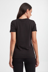T-shirt marki Sportalm w czarnym kolorze. Na froncie nadruk z logo marki o różnorodnej fakturze. Dekolt o-neck wykończony gładkim ściągaczem. Fason typu regular. Wykonany ze stuprocentowej bawełny.