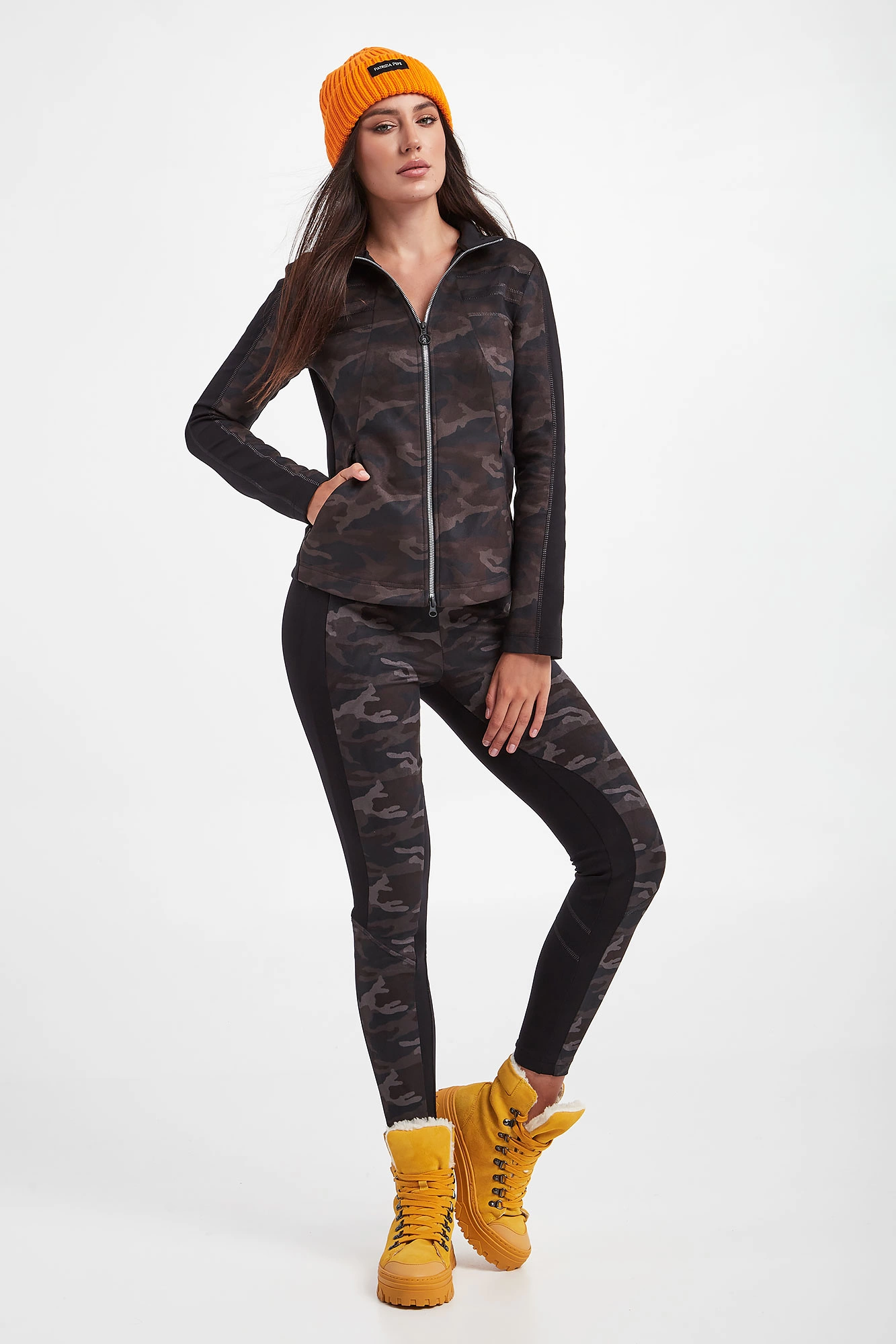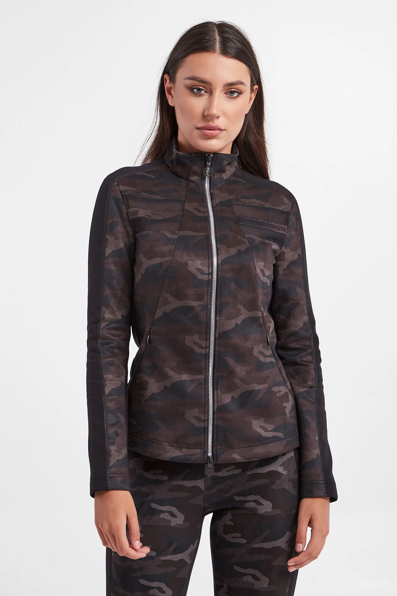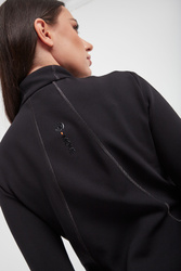 Bluza marki Sportalm w czarnym kolorze. Na froncie wzór z motywem kamuflażu. Zapinana za pomocą dwustronnego zamka. Na całości przeszycia połyskującą nicią. Dwie boczne, zamykane kieszenie. Z tyłu połyskujący nadruk z logo. Fason typu slim.