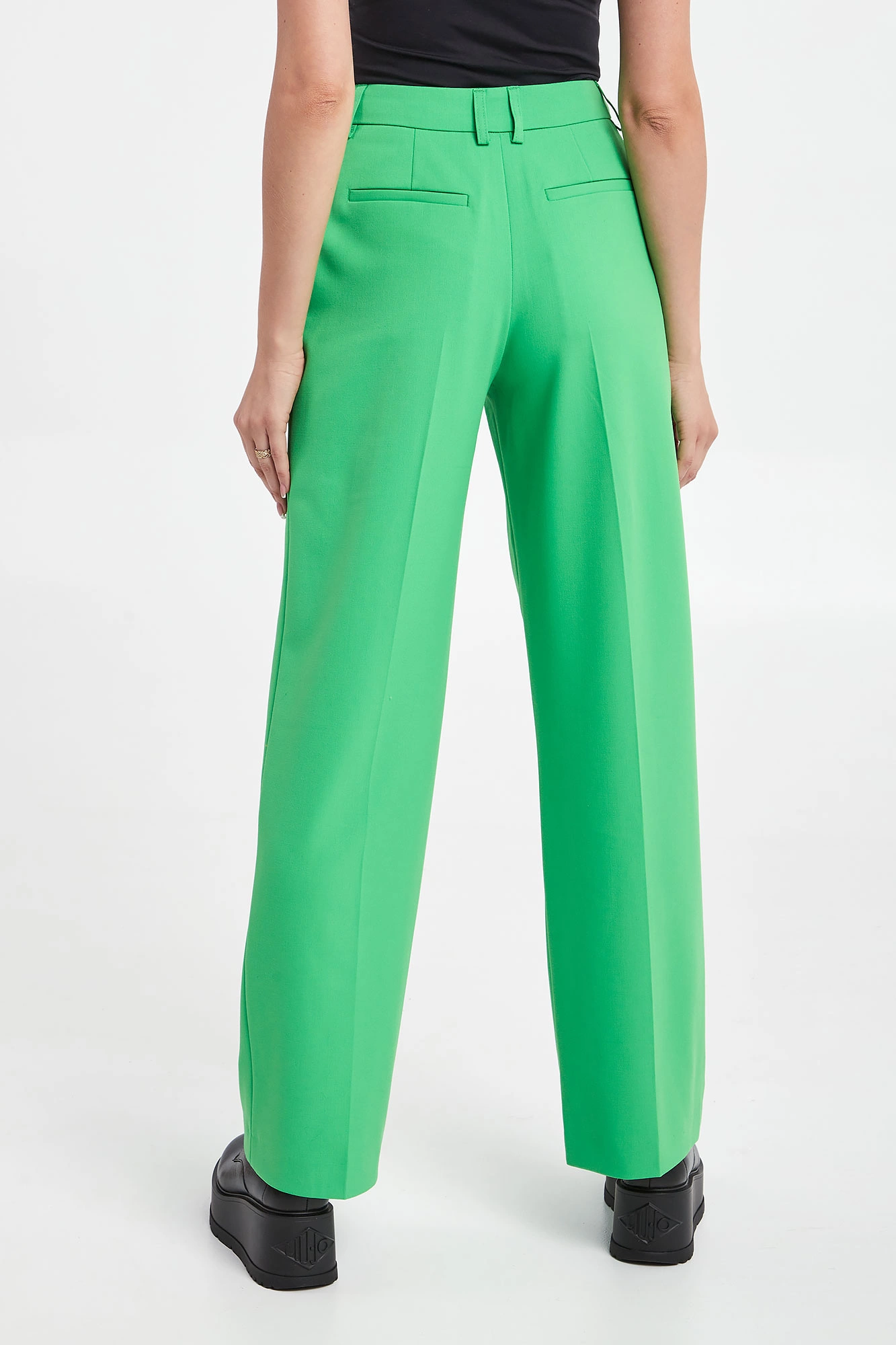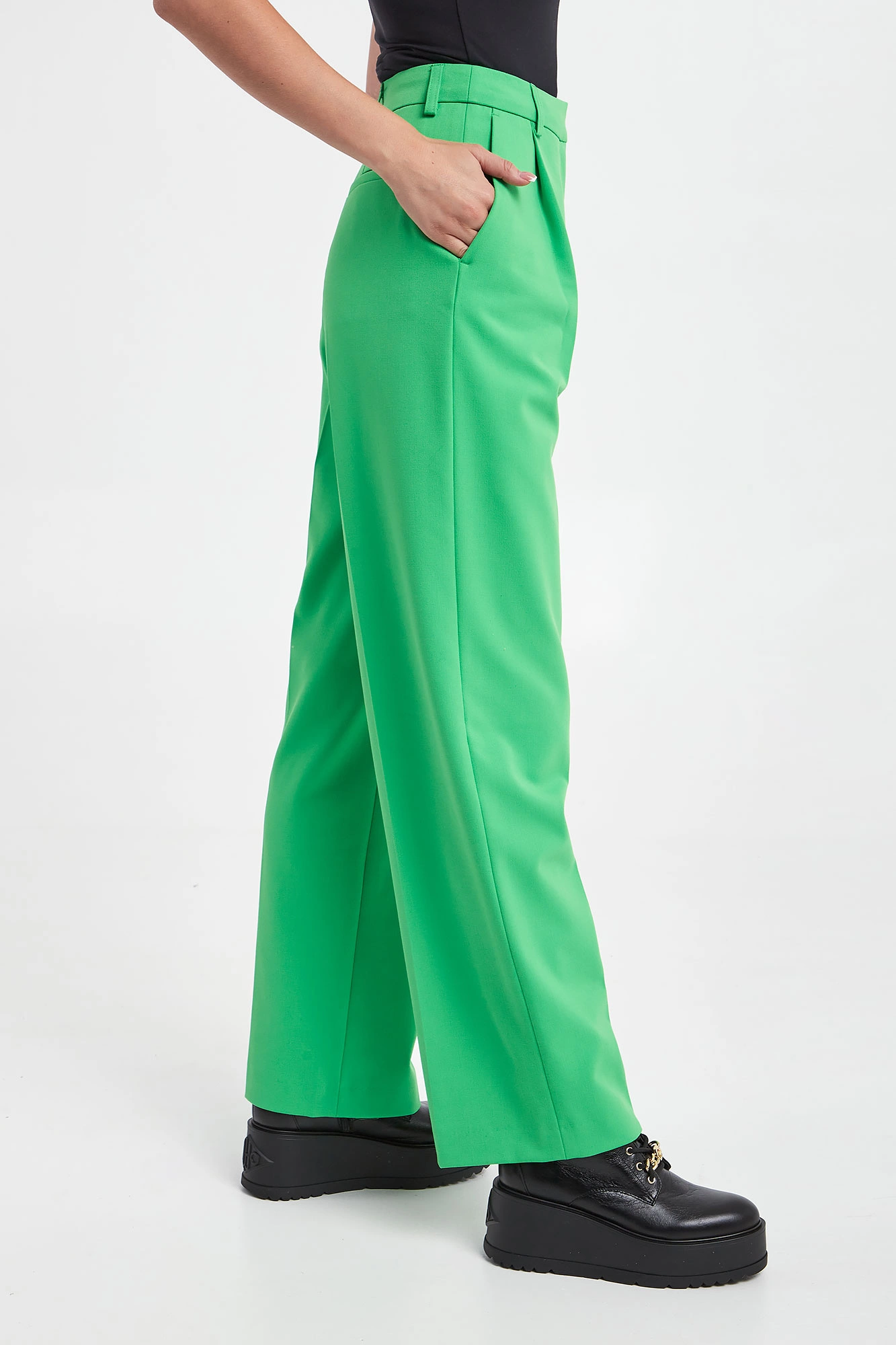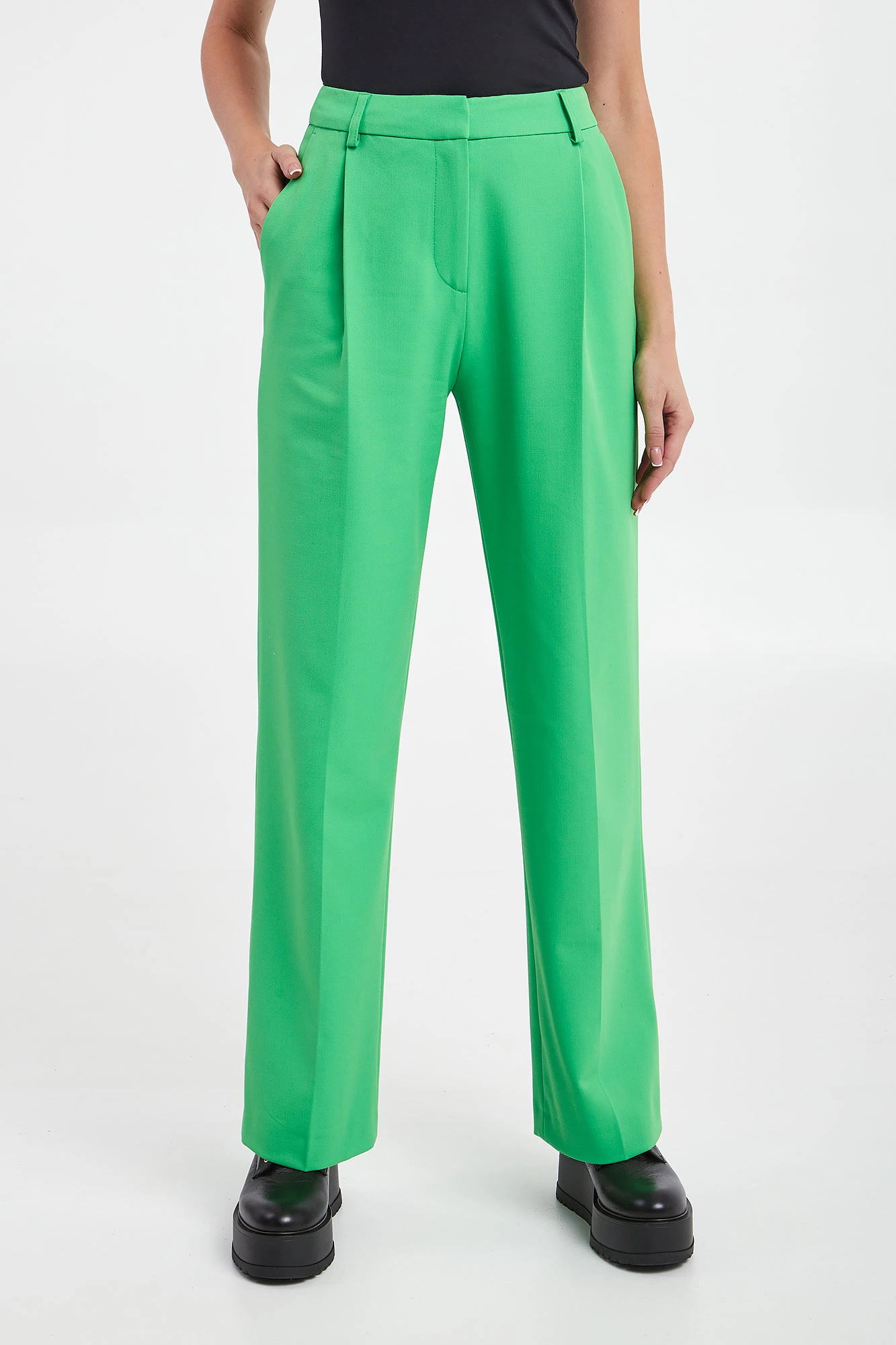 Spodnie marki Samsøe Samsøe w intensywnym, zielonym kolorze. W kant. Model z czterema kieszeniami. W pasie szlufki. Zapinana na zamek i haftki. Fason typu straight. Wykonane z poliestru z recyklngu i wiskozy z włókien LENZING™ ECOVERO™.