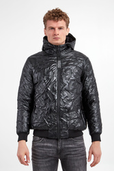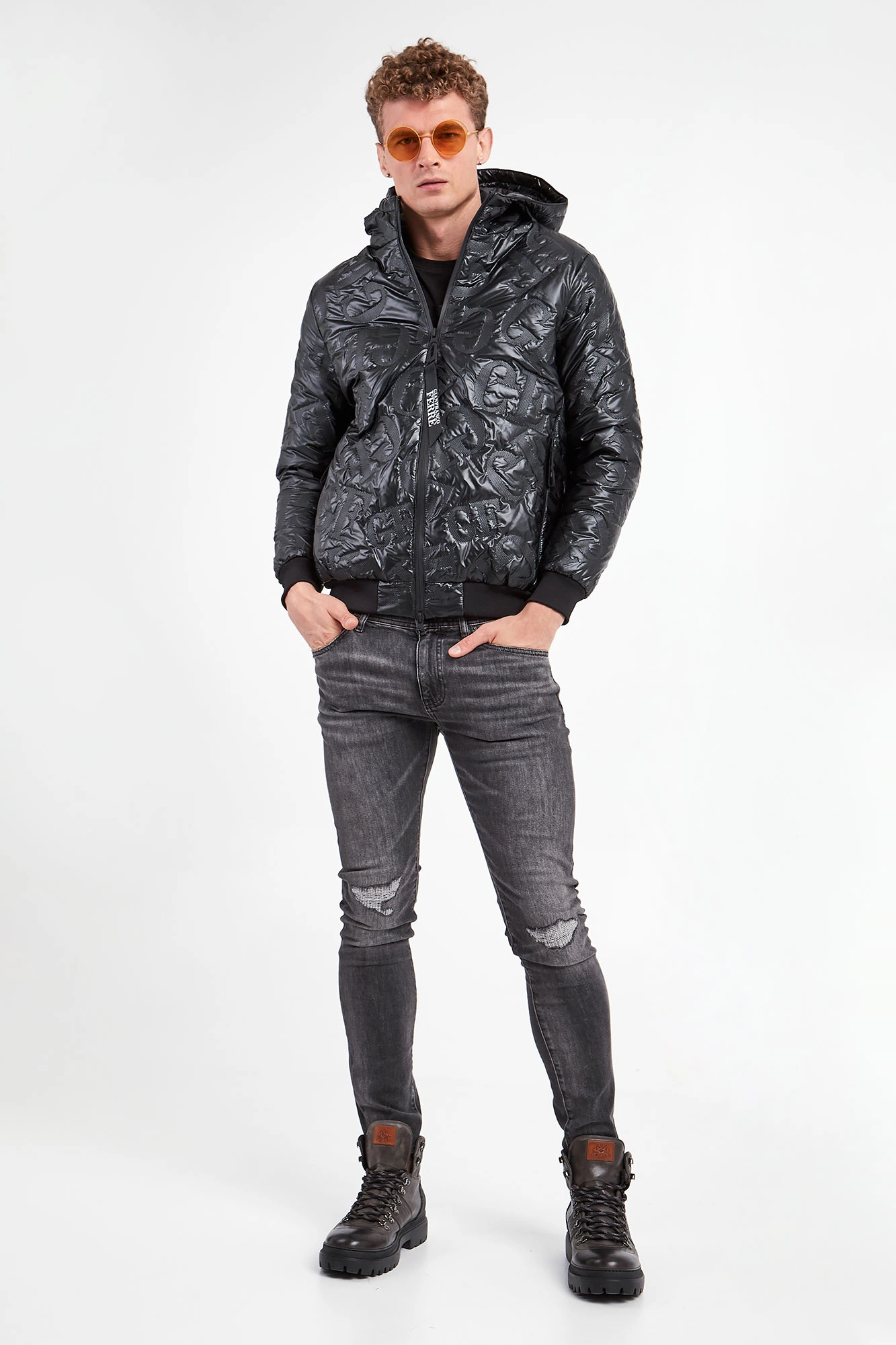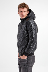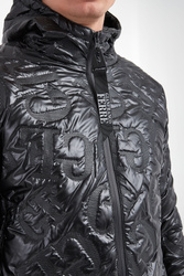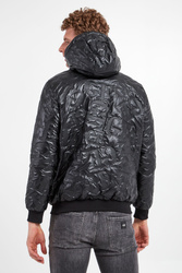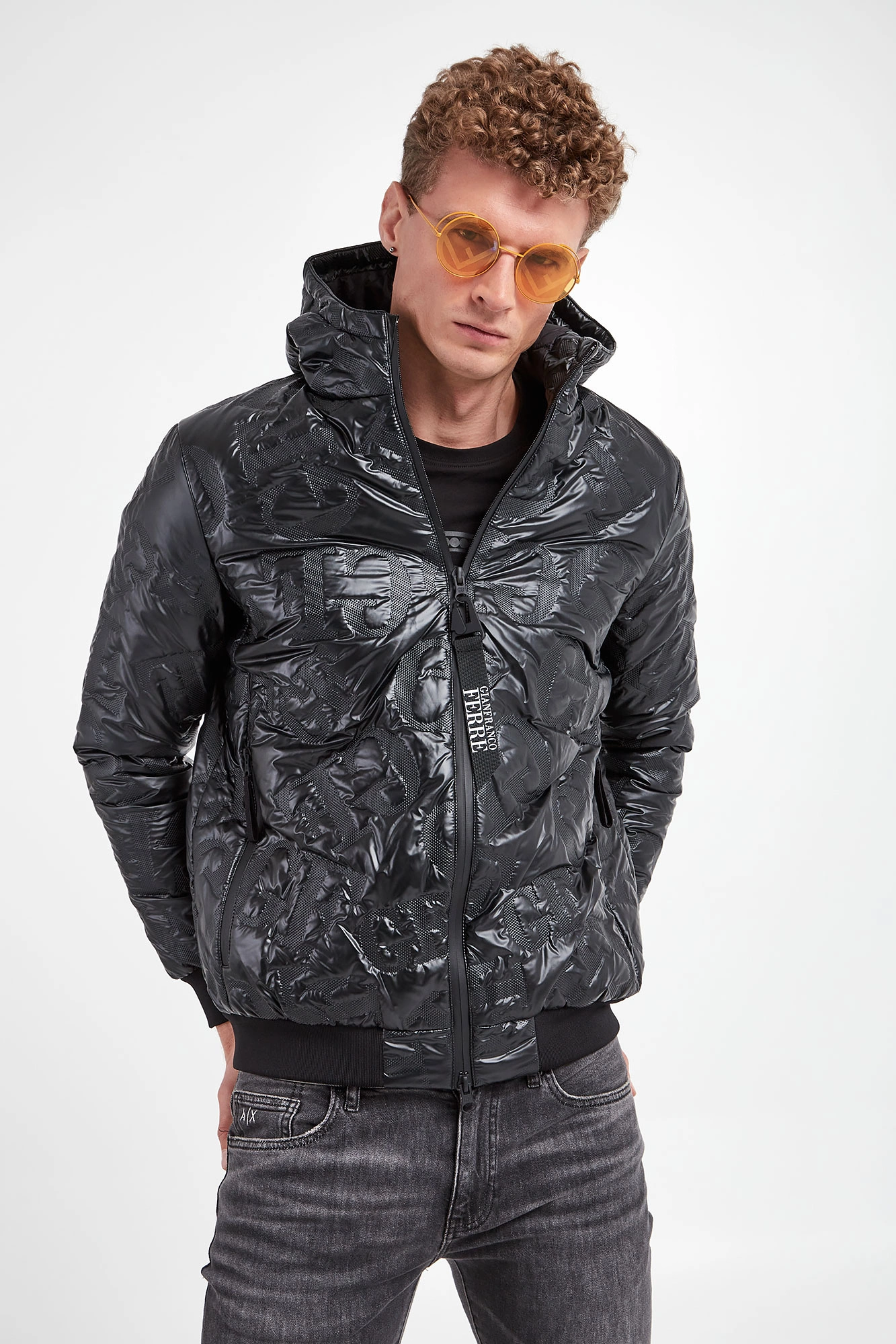 Kurtka z kapturem marki Gianfranco Ferre w czarnym kolorze. Zapinana na dwukierunkowy zamek z odpinaną, sygnowaną zawieszką. Na całości pikowanie w kształt liter G i F. Model z dwoma kieszeniami na froncie i kieszeniami wewnętrznymi. Rękawy i dół wykończone elastycznym ściągaczem prążkowanym. Fason typu relaxed.