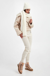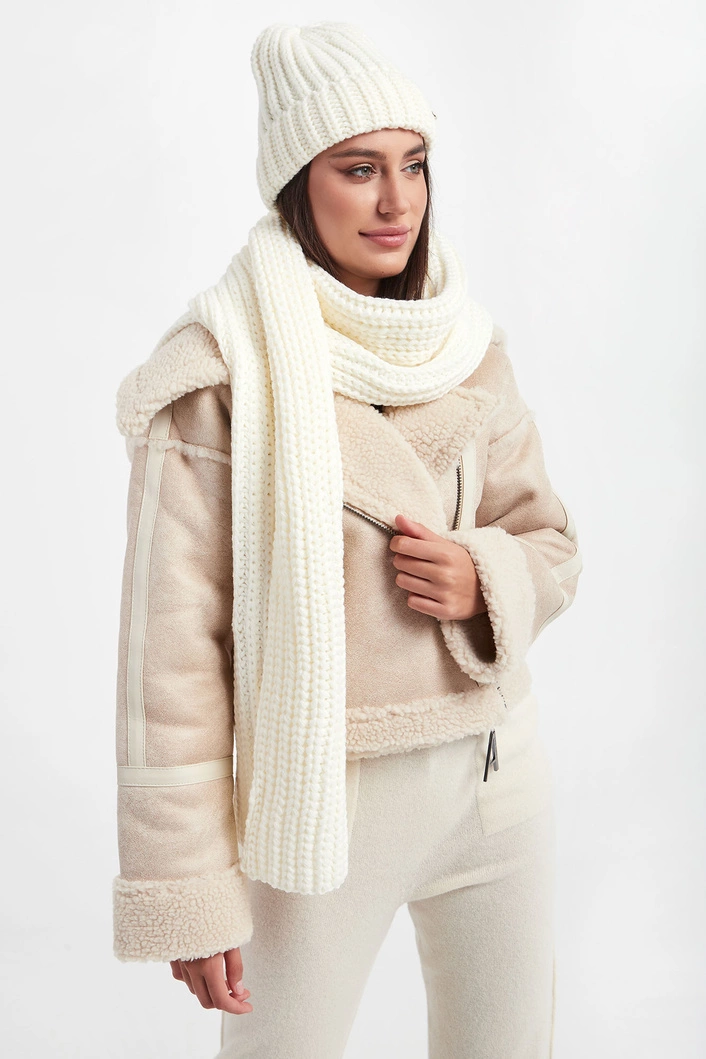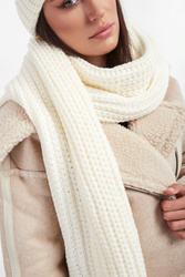 Szal marki Liu Jo w kolorze ecru. Na całości warkoczowy splot. Z boku złota, sygnowana zawieszka z kryształkiem. Ciepły, bardzo miękki i ponadczasowy.