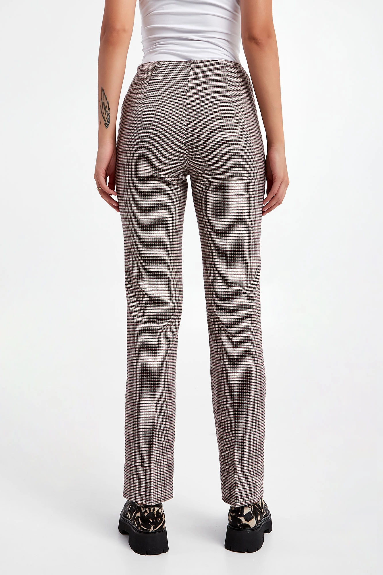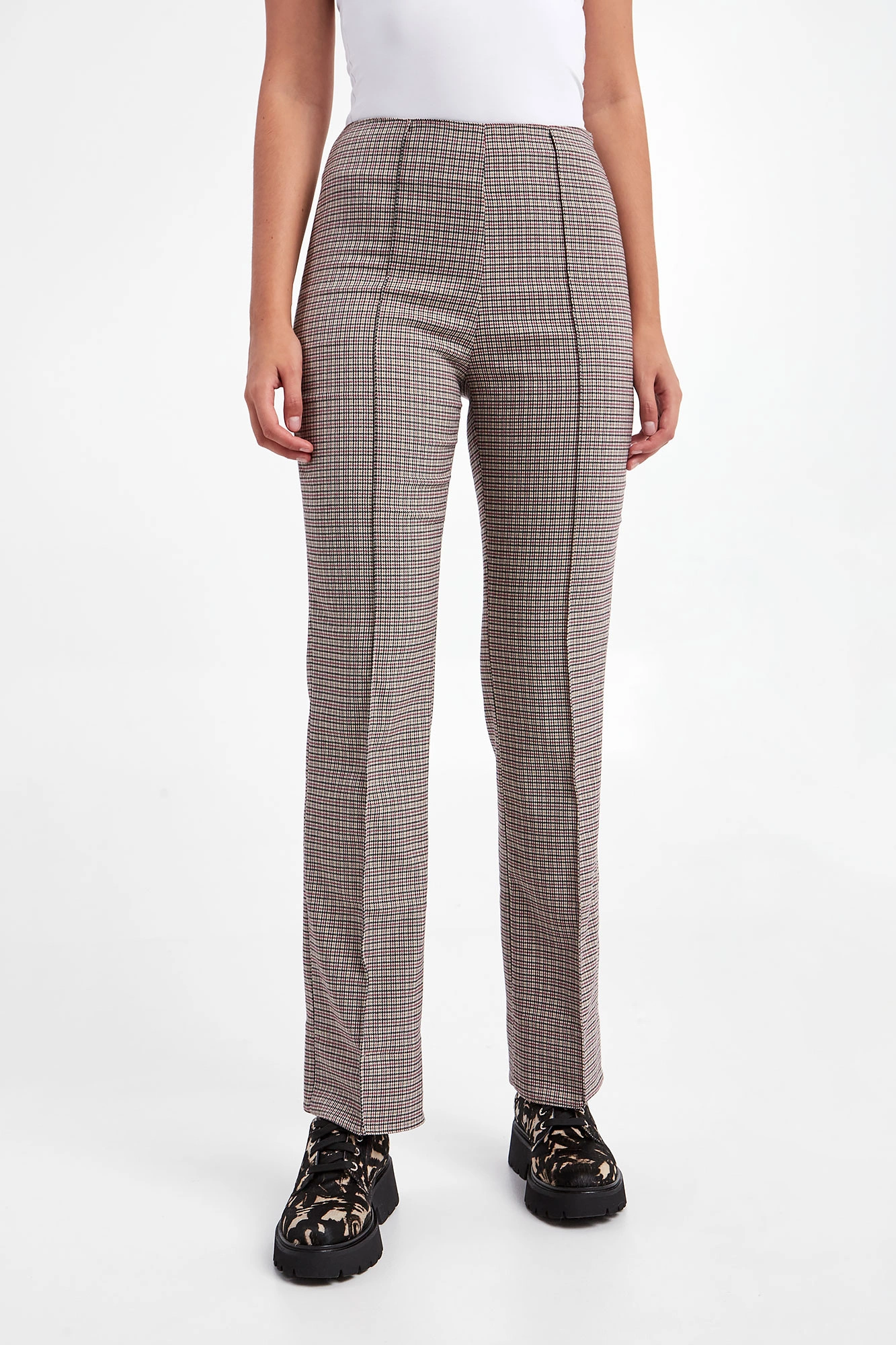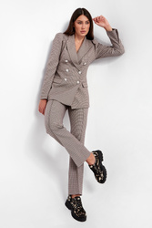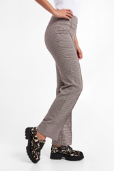 Spodnie w kartę marki Notes du Nord. W kant. Zapinane po boku za pomocą zamka błyskawicznego. Wyższy stan. Fason typu slim.