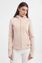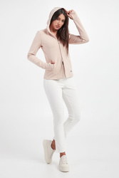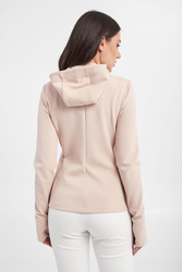Bluza z kapturem marki Max Mara Leisure w kolorze pudrowego rożu. Zapinana za pomocą dwukierunkowego zamka. Model z dwoma kieszeniami. Z przodu naszywka z nazwą marki. Długie rękawy. Fason typu slim.