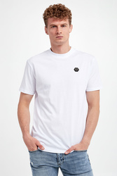 T-shirt marki Philipp Plein w białym kolorze. Z boku skórzana naszywka ze srebrnym logo. Z tyłu kolorowy haft z motywem czaszek oraz czarny nadruk z logo. Dekolt typu o-neck zakończony prążkowanym ściągaczem. Krótkie rękawy i dół wykończone lamówką. Z boku logowana naszywka. Fason typu regular. Wykonany ze stuprocentowej bawełny.