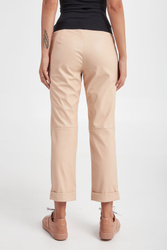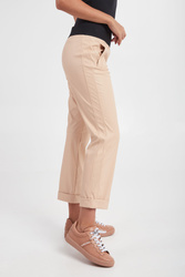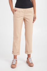 Spodnie marki Sportalm w kolorze beżowym. W talii czarny, elastyczny ściągacz. Model z dwoma wpuszczanymi kieszeniami. Fason typu regular. Dół zawijany. Wykonane ze skóry ekologicznej.