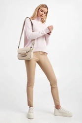 Spodnie z ekoskóry marki Max Mara Leisure w beżowym kolorze. W talii elastyczny ściągacz. Zwężane nogawki. Fason typu slim.