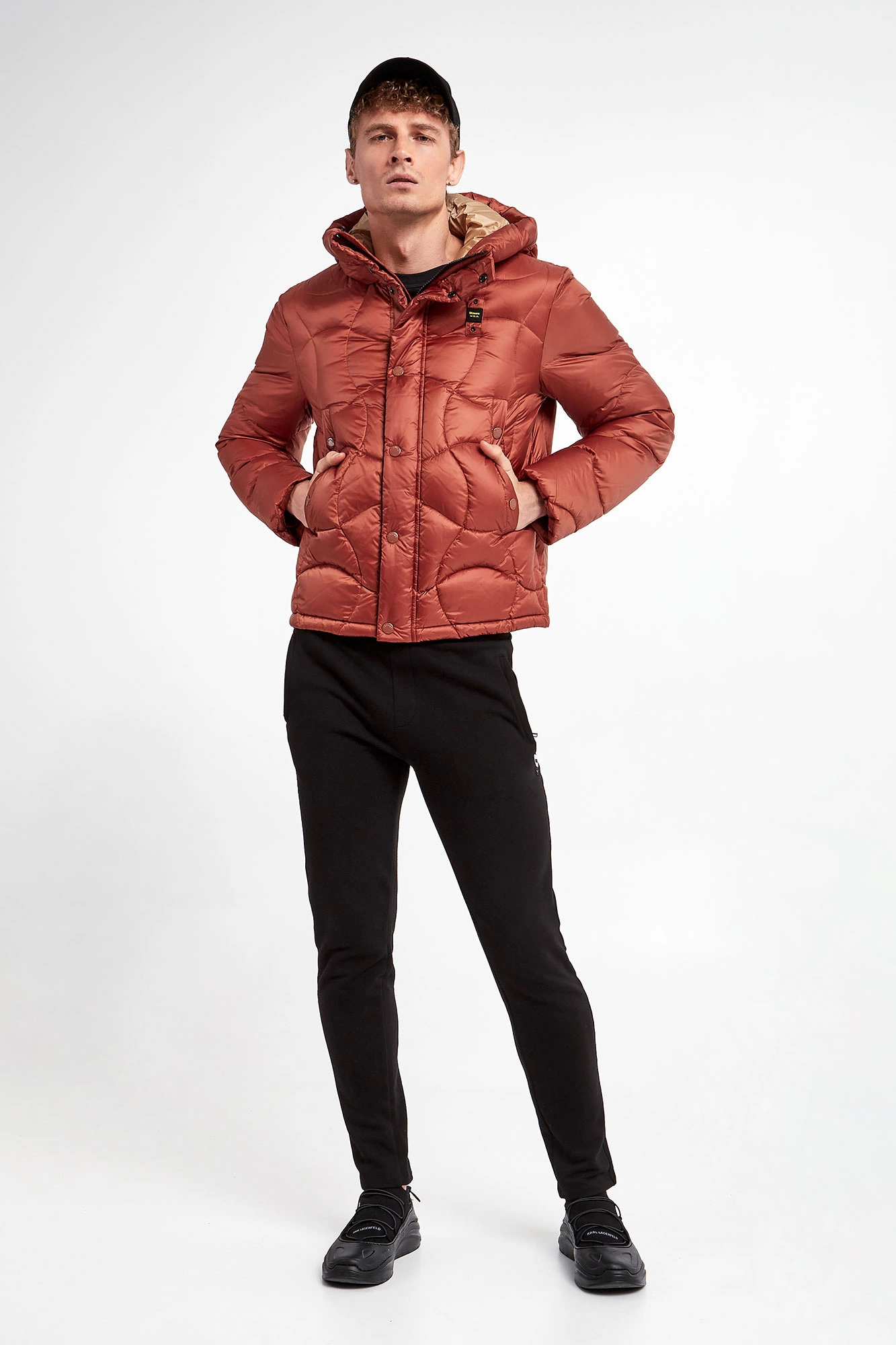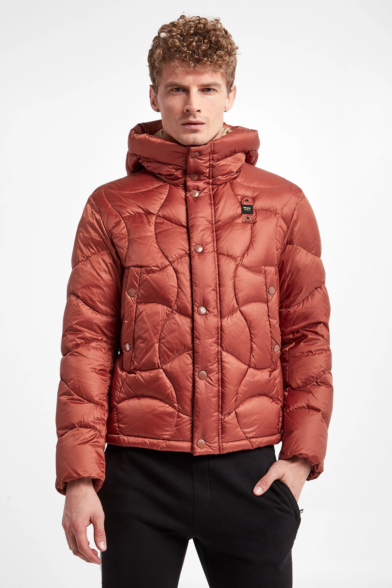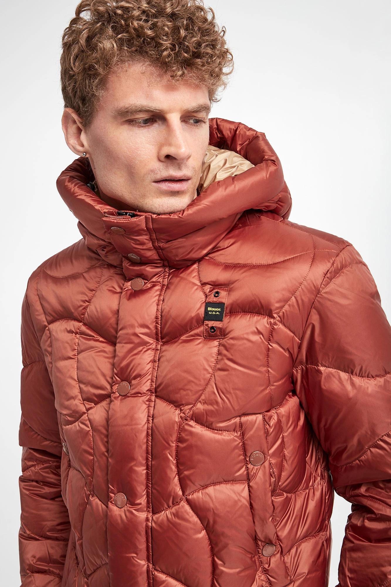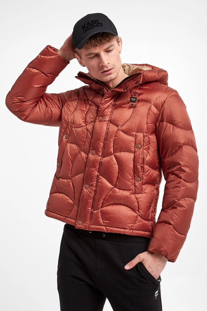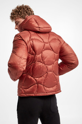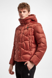 Kurtka puchowa marki Blauer w miedzianym kolorze. Naturalne wypełnienie. Z kapturem regulowanym za pomocą elastycznych troczków ze stoperem. Pikowana. Model z dwoma kieszeniami zapinanymi na napy. Zapinana za pomocą dwukierunkowego zamka w kontrastowym, czarnym kolorze i nap krytych tasiemką. Z przodu naszywka z nazwą marki. Podszewka w beżowym kolorze. Wewnątrz dodatkowa kieszeń. Fason typu regular. Dół regulowany za pomocą troczków.