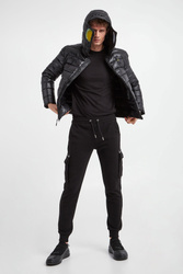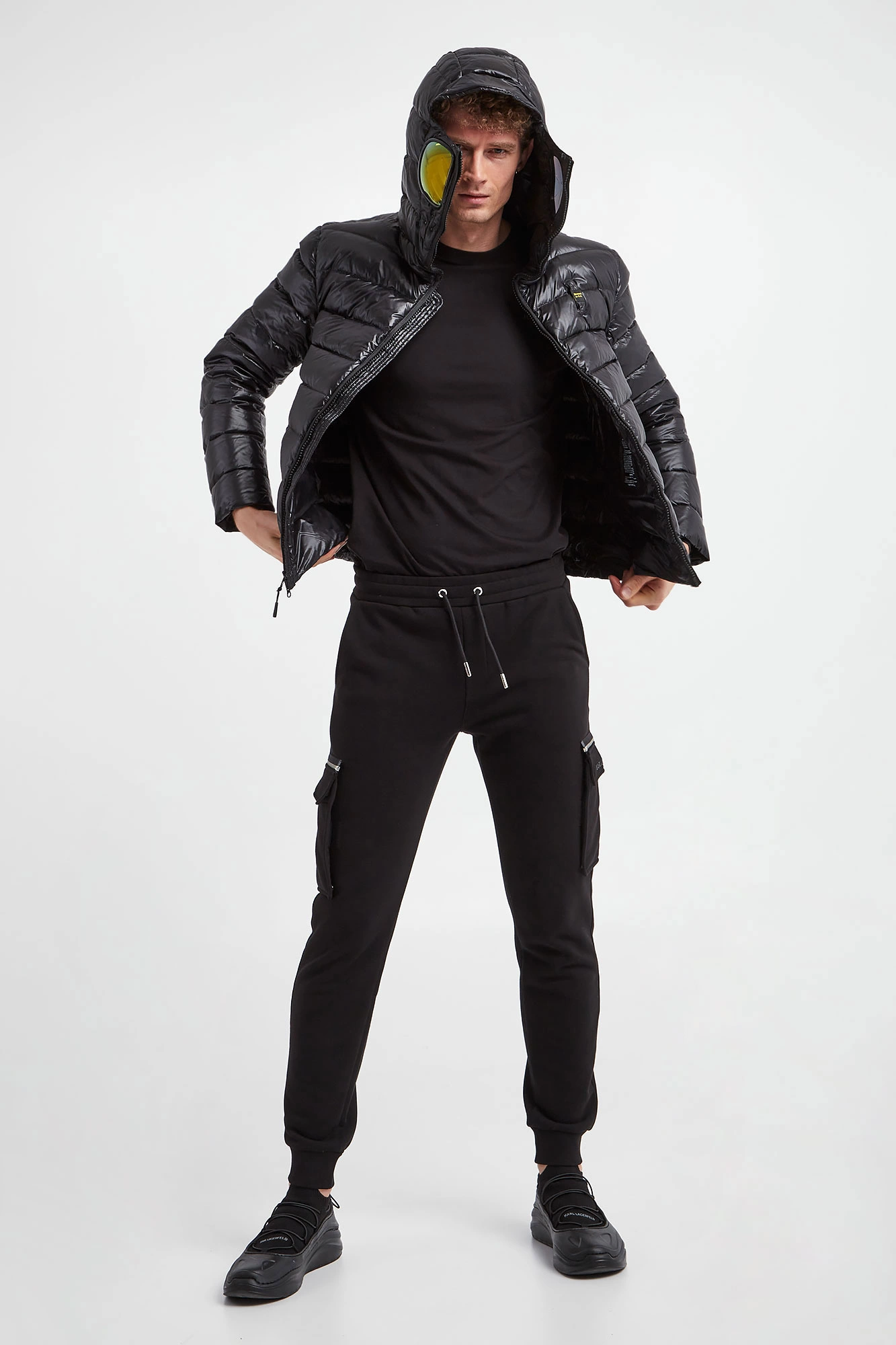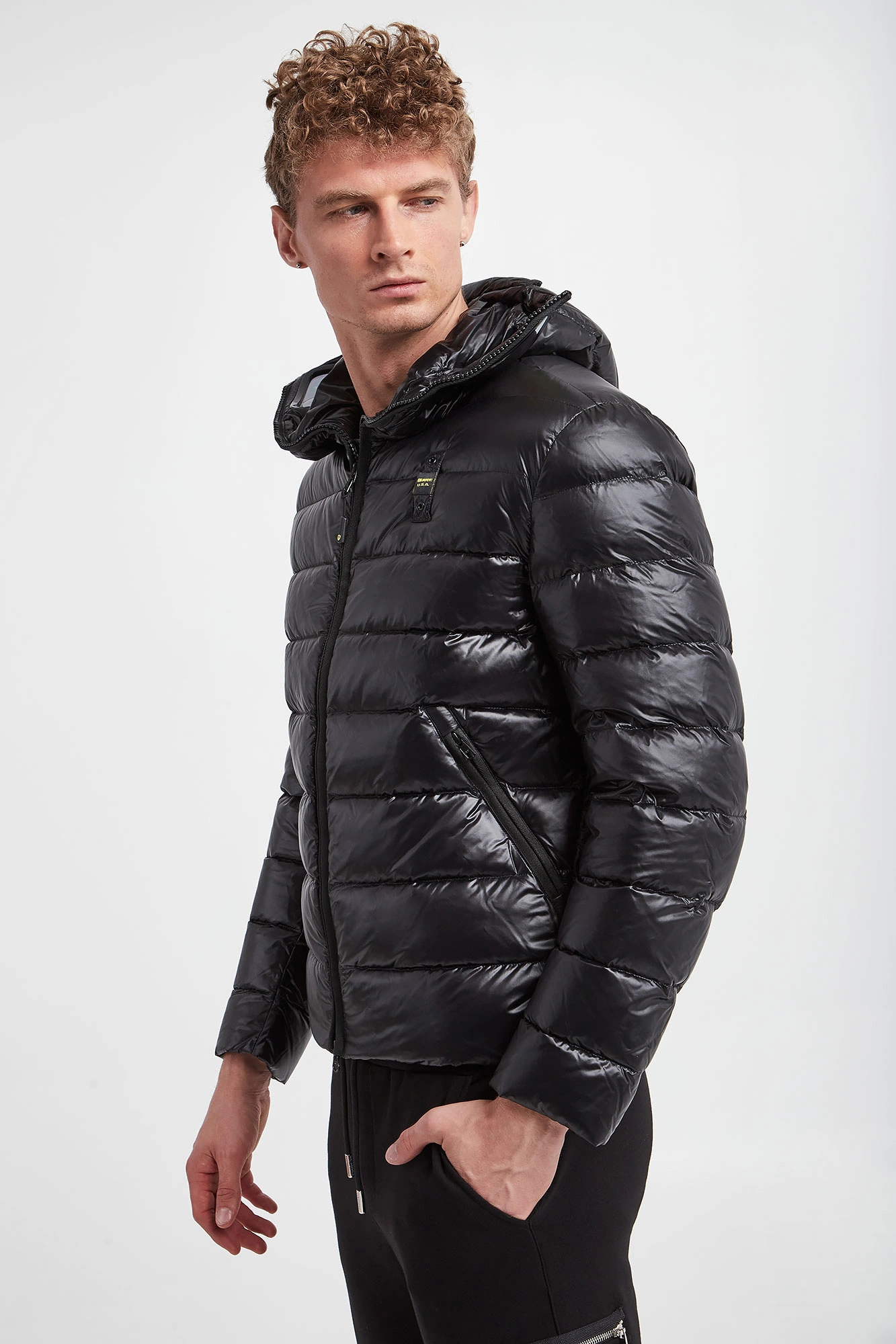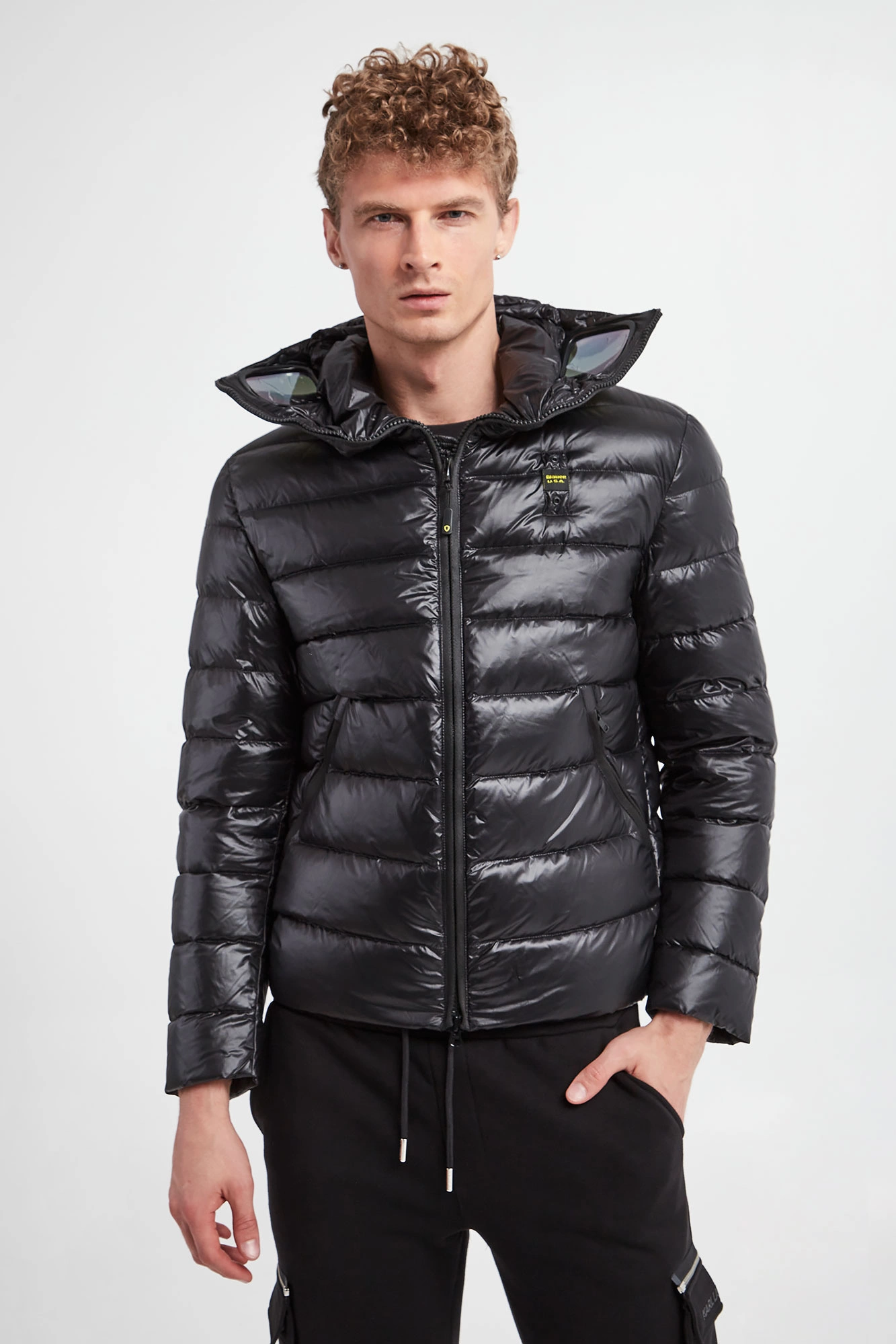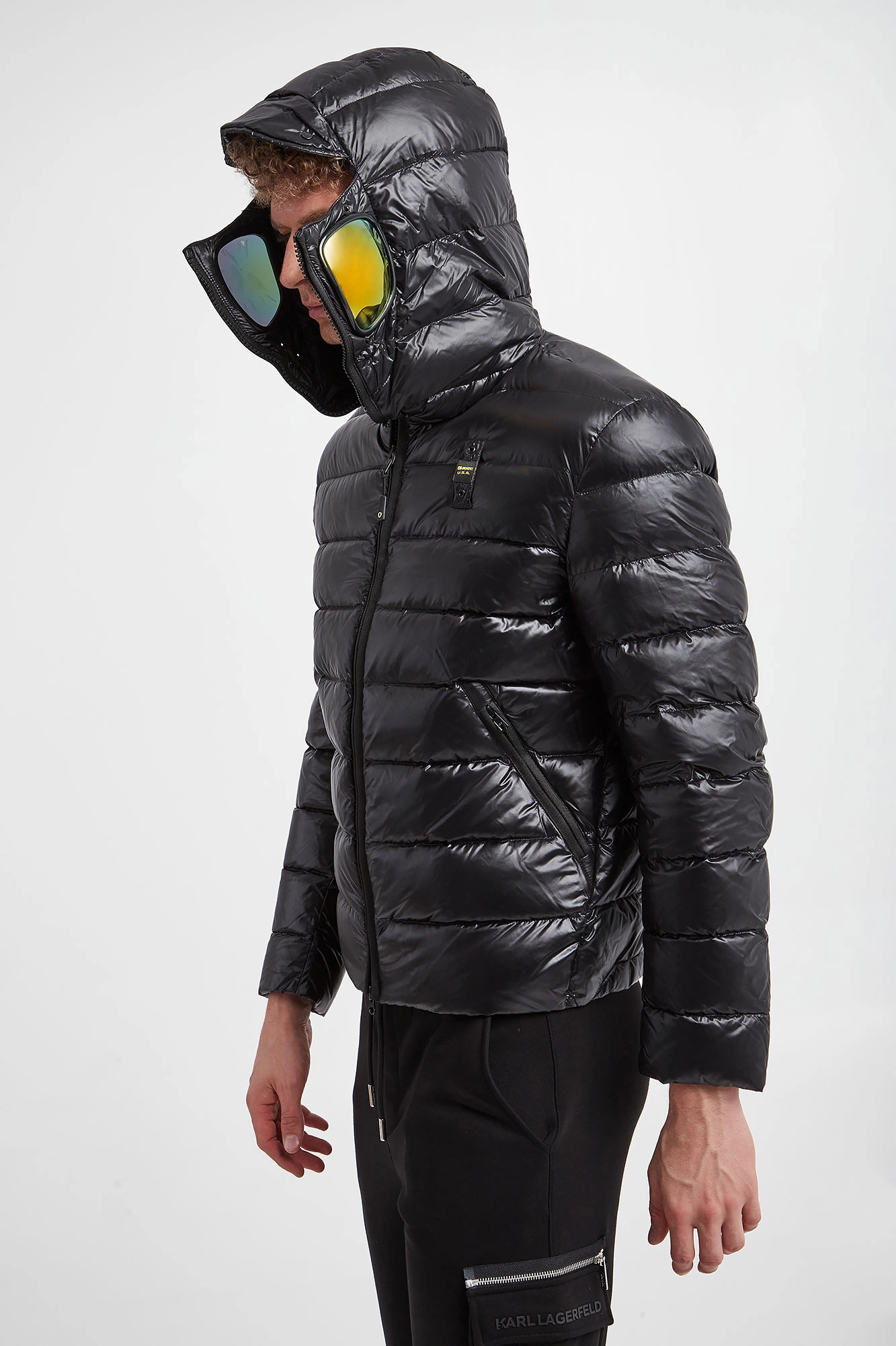 Kurtka puchowa marki Blauer w czarnym kolorze. Kaptur ze wstawką w postaci ochronnych gogli. Naturalne wypełnienie. Całość pikowana. Zapinana za pomocą nap oraz dwukierunkowego zamka. Na przodzie dwie kieszenie zamykane na zamek. Wewnątrz dwie kieszenie. Na piersi sygnowana szlufka.