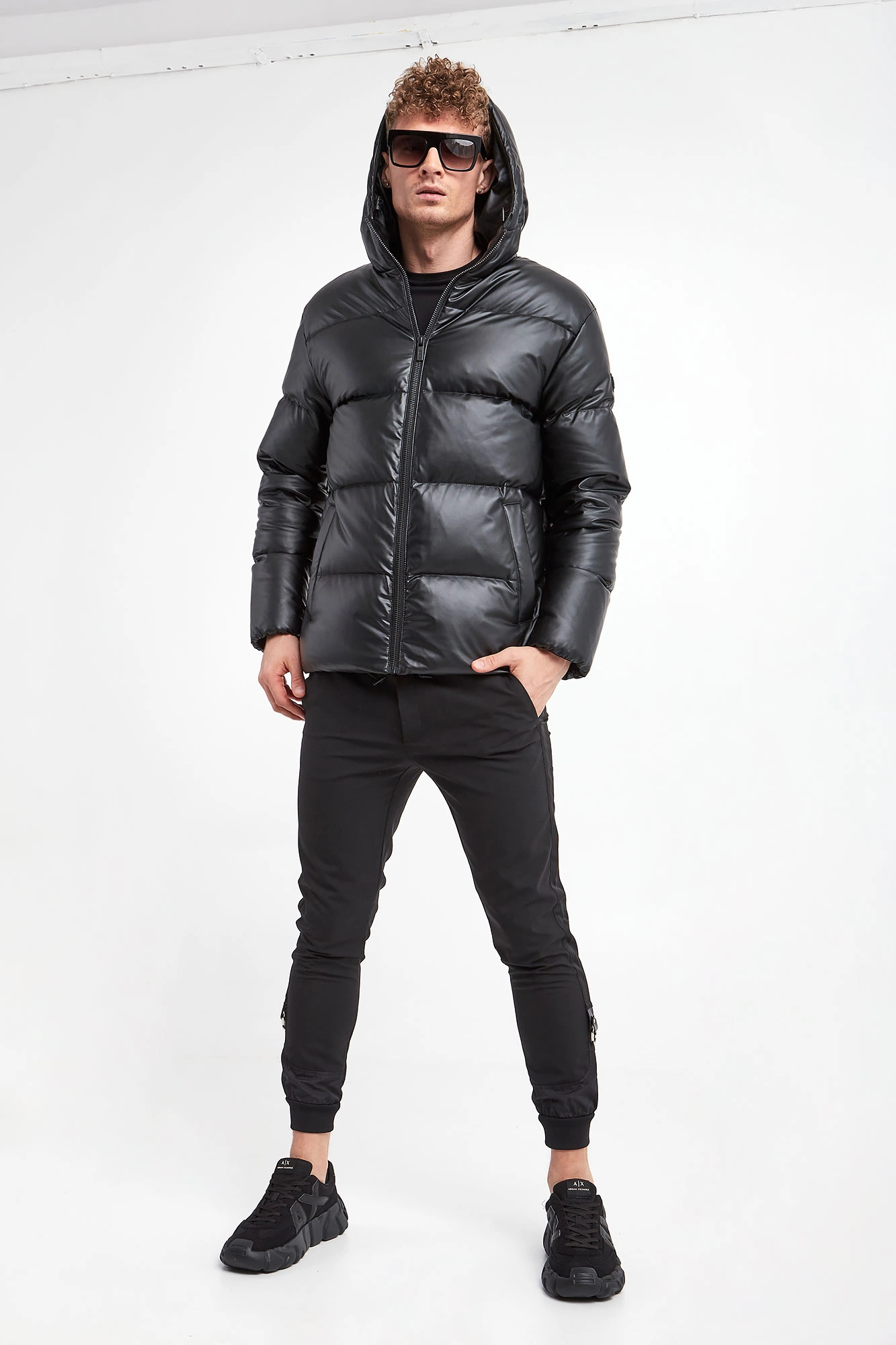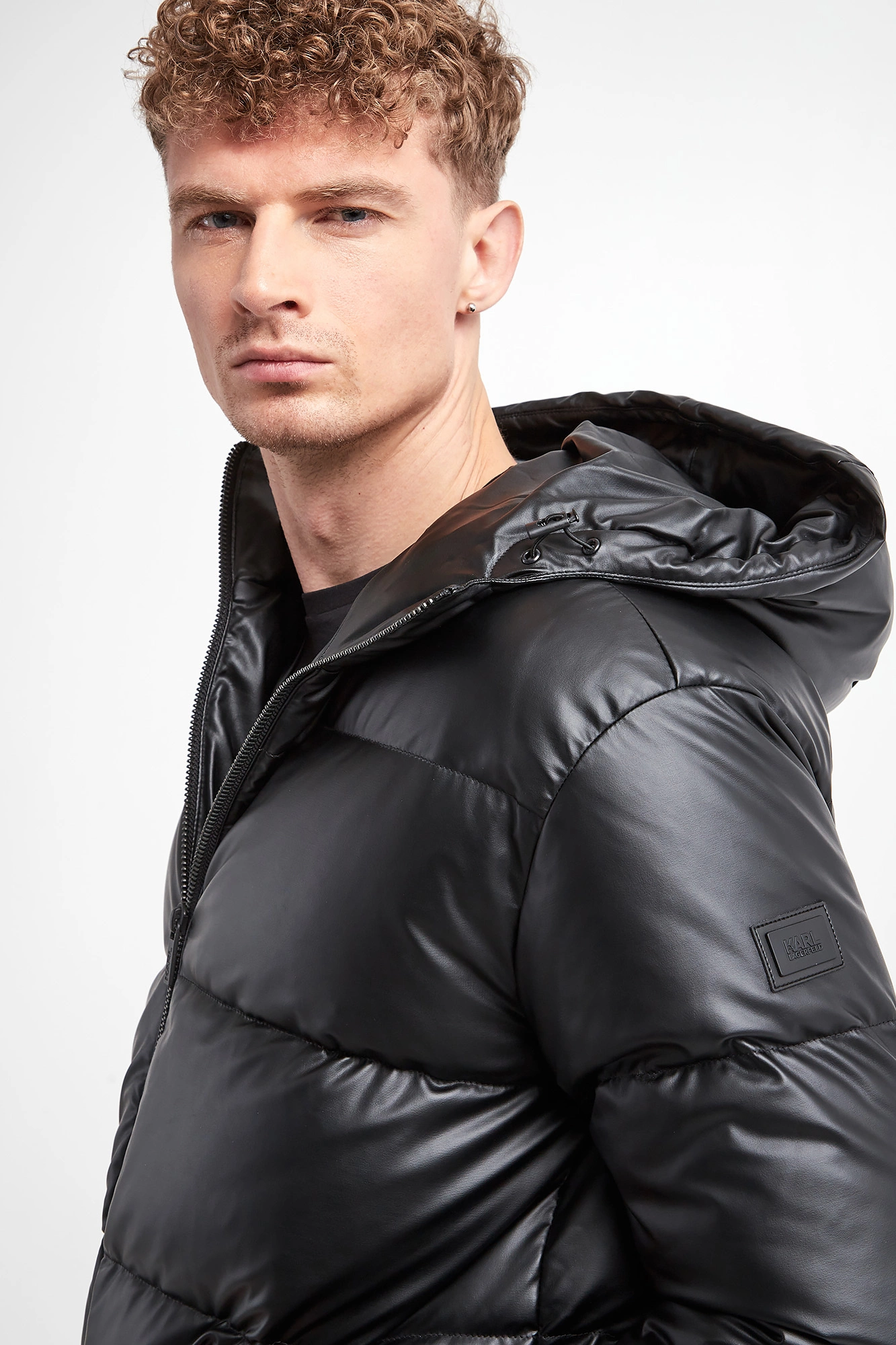 Pikowana kurtka marki Karl Lagerfeld w czarnym kolorze. Z kapturem. Zapinana za pomocą zamka z sygnowaną zawieszką. Na rękawie gumowana naszywka z tłoczonym logo. Dwie boczne, wpuszczane kieszenie. Przy kapturze i u dołu regulowane ściągacze. Fason typu regular.