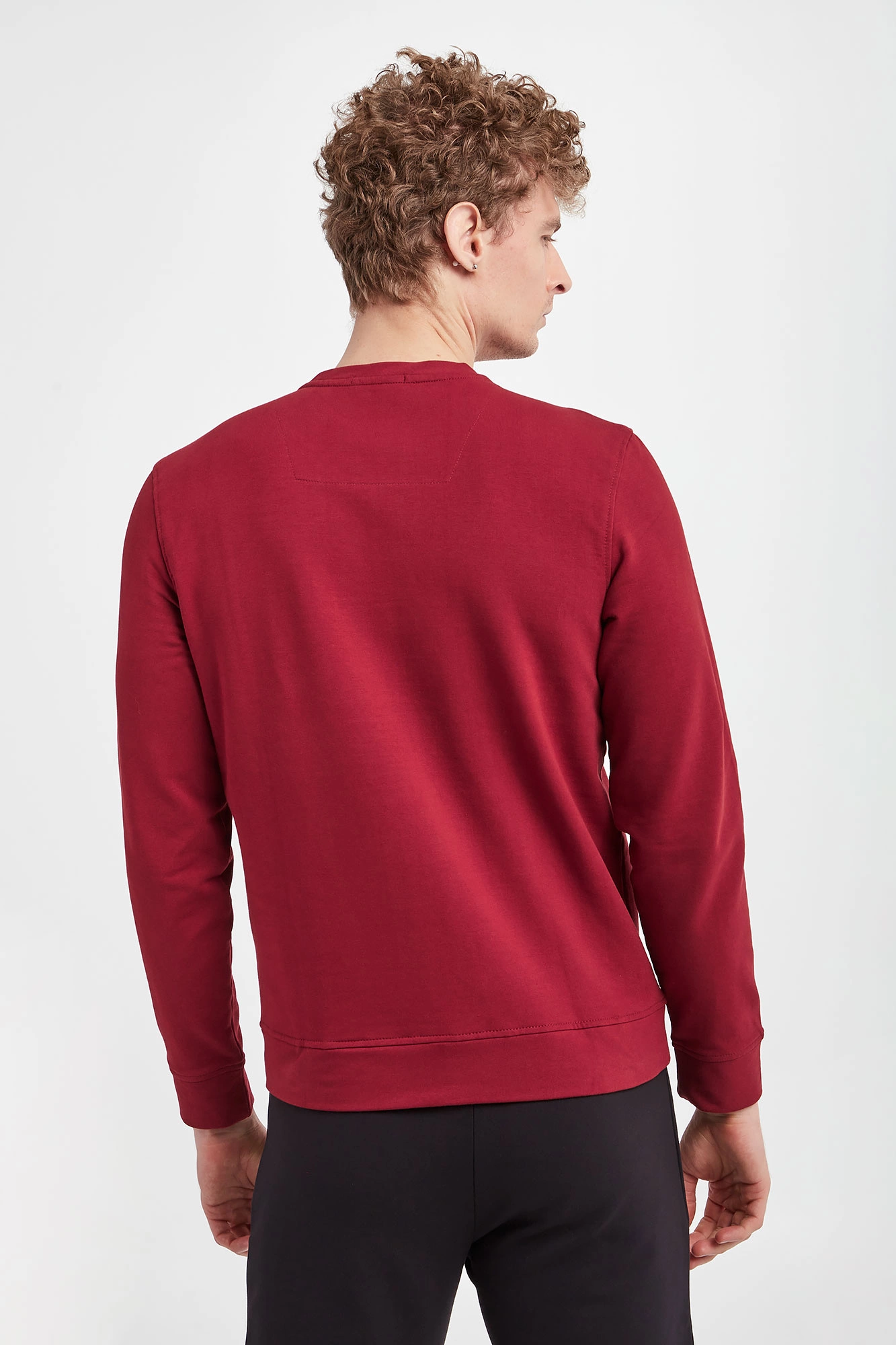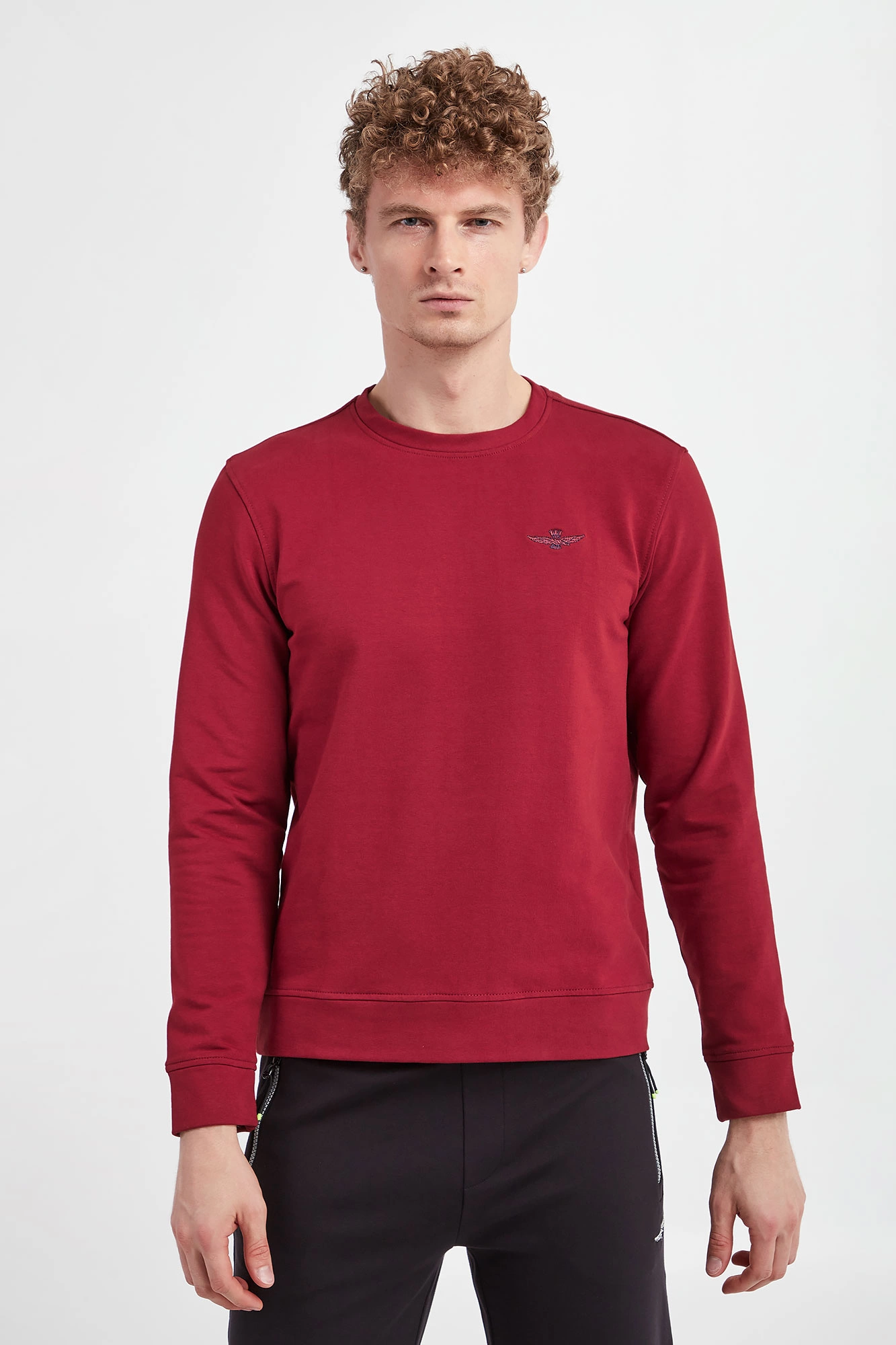 Bluza marki Aeronautica Militare w bordowym kolorze. Na froncie wyszywany haft z logo marki. Dekolt typu o-neck, długie rękawy i dół wykończone elastycznym ściągaczem. Fason typu regular. Model wykonany z mięsistej bawełny.
