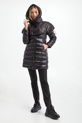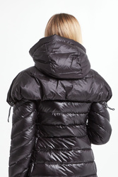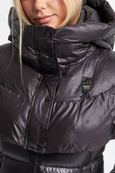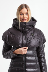 Komin marki Blauer w kolorze czarnym. Model z regulowanym kapturem. Zapinany na czarny zamek i sygnowane napy. Na froncie naszywana aplikacja z nazwą marki. Na całości pikowana.