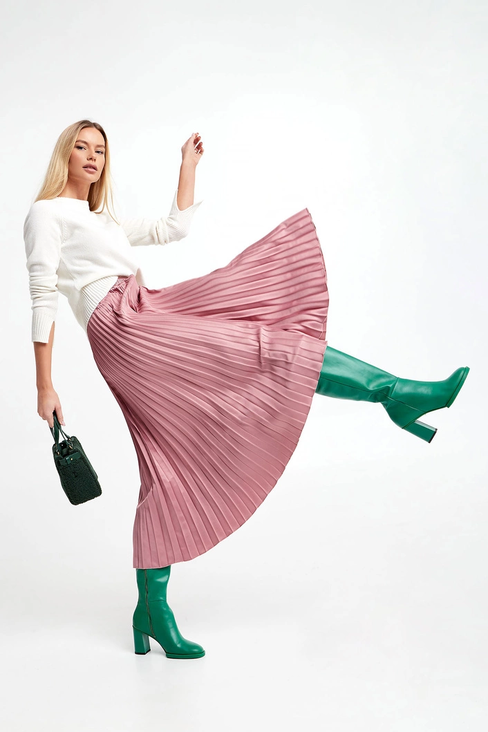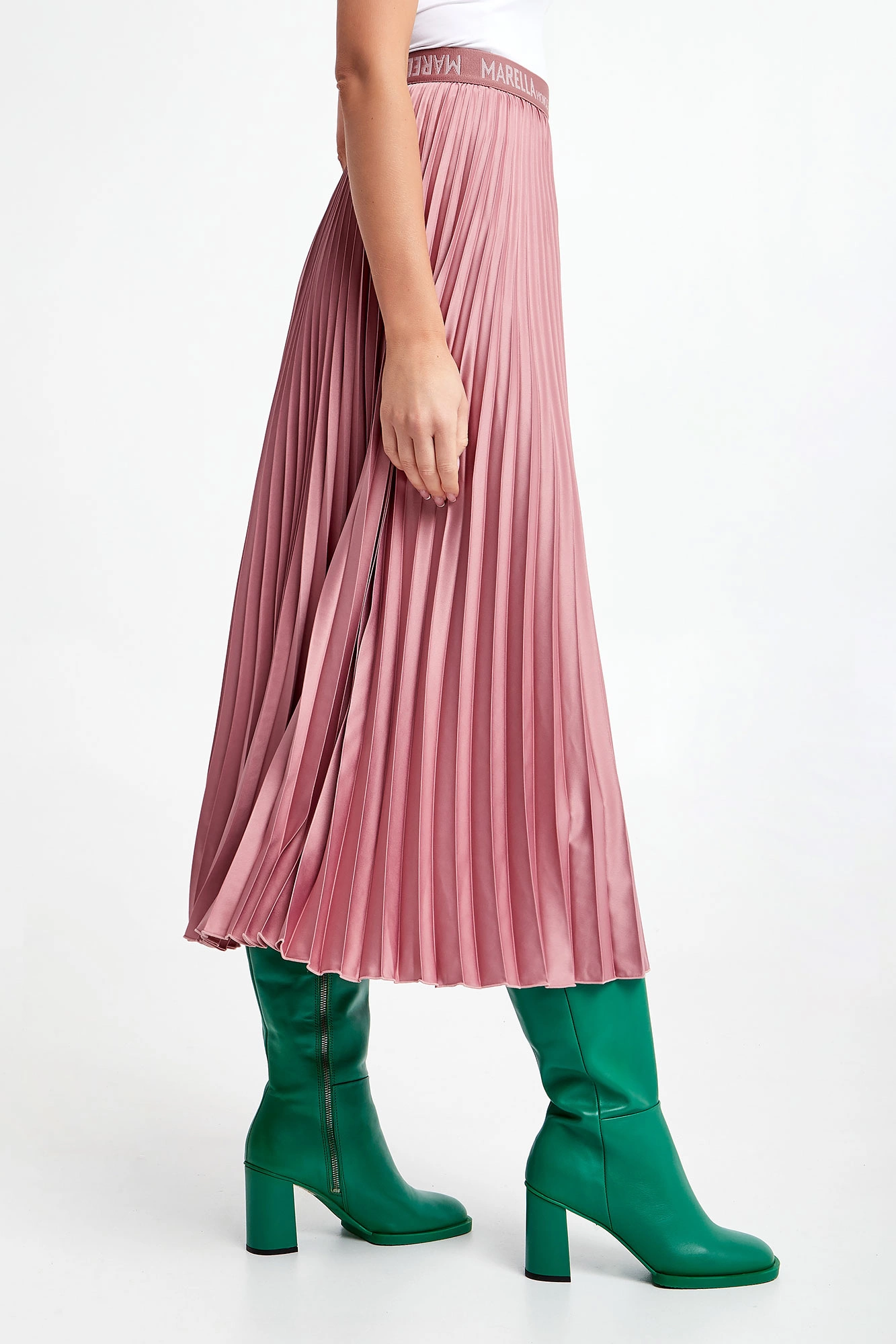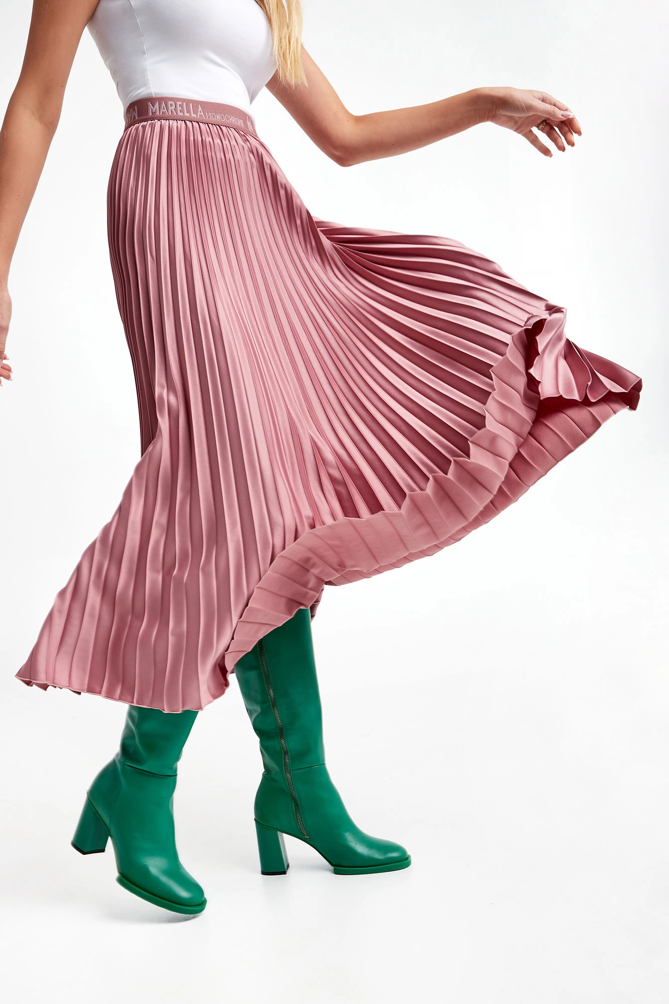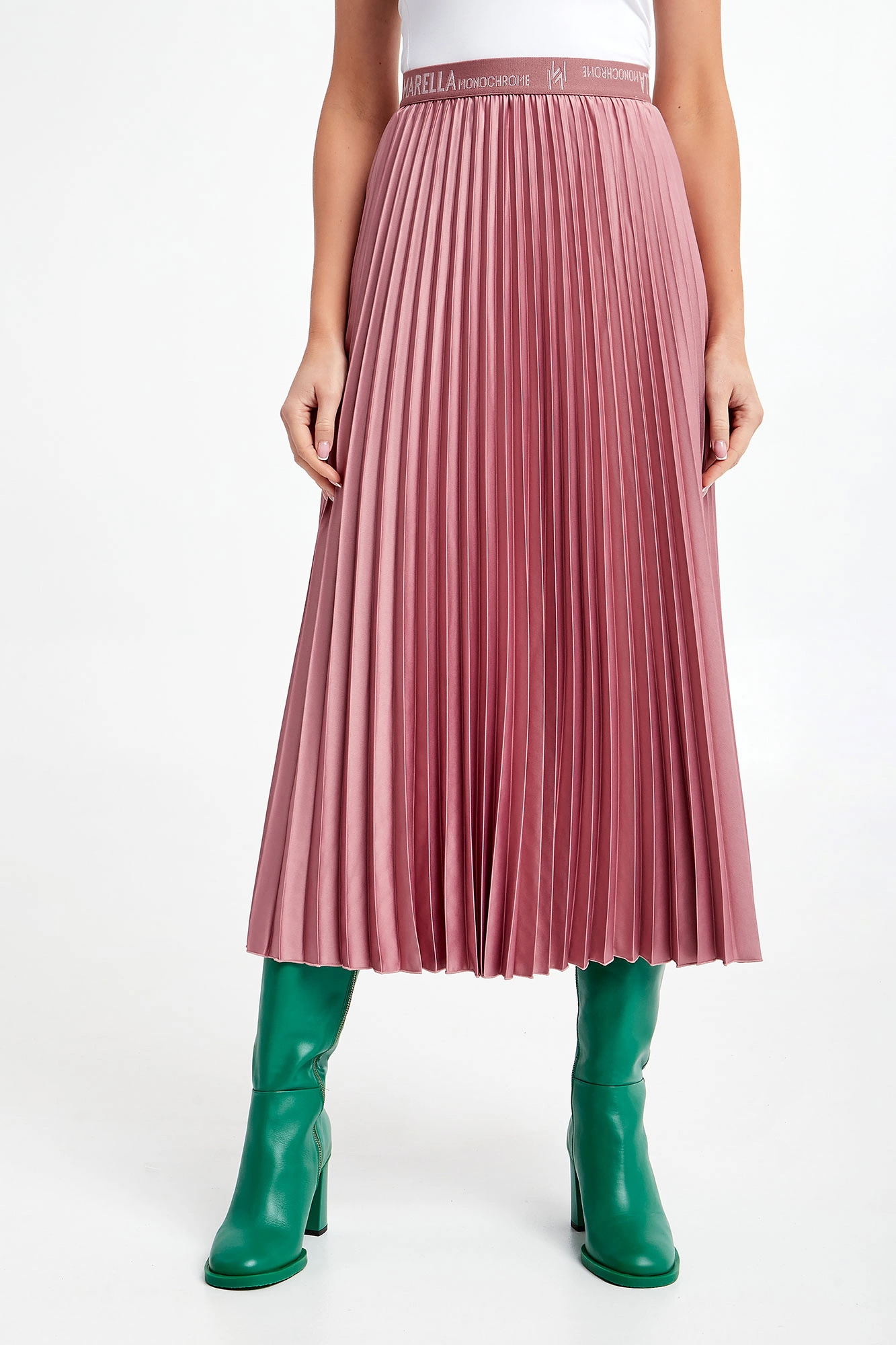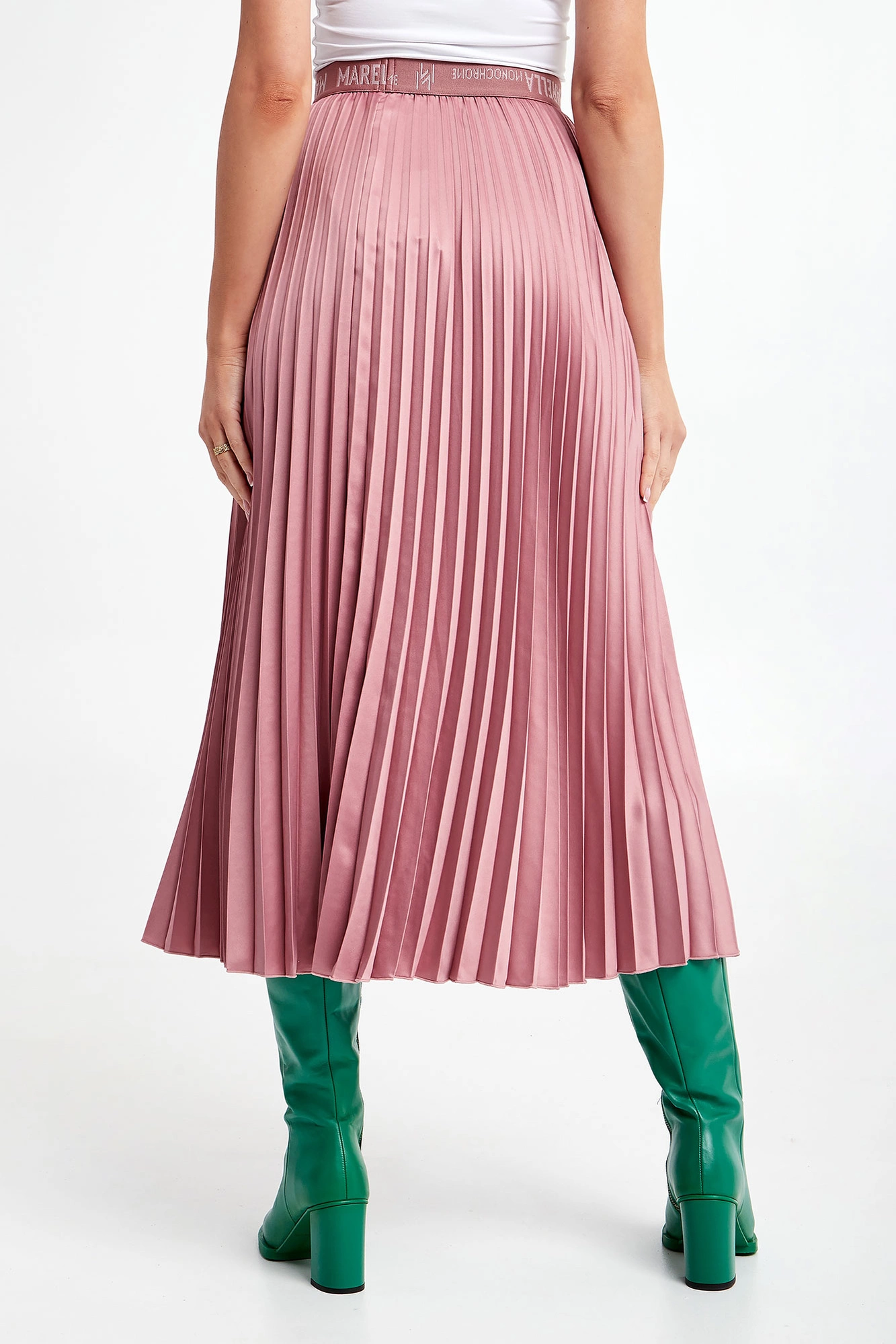 Spódnica plisowana marki Marella Monochrome w kolorze brudnego różu. W pasie sygnowany, elastyczny ściągacz. Fason regular. trapezowy krój, długość midi. Lekka i zwiewna.