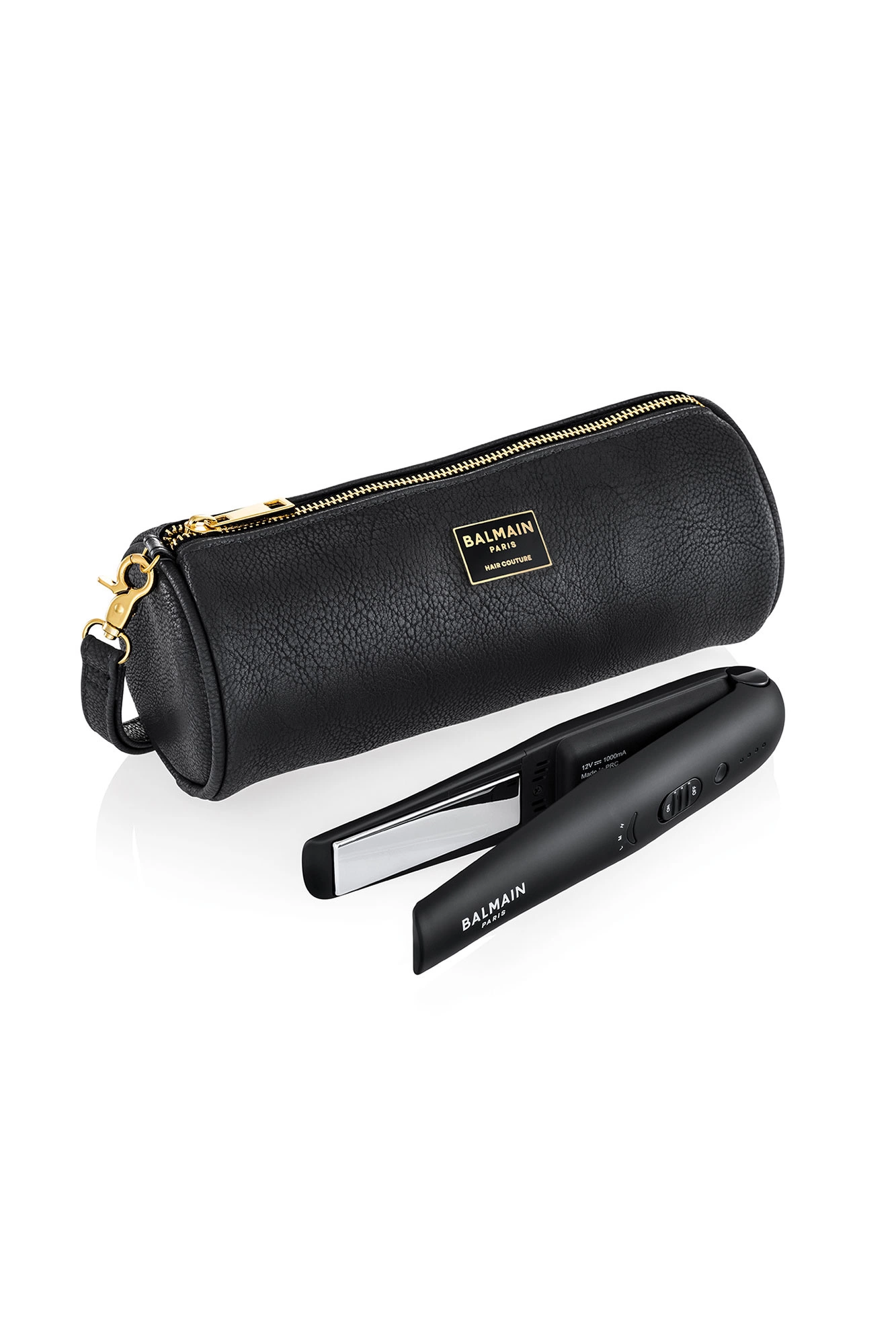 Prostownica bezprzewodowa marki Balmain Paris Hair Couture w czarnym kolorze. Pozwala szybko i bez trudu prostować włosy lub tworzyć loki i fale. Technologia tytanowych płytek, które gładko przesuwają się po włosach, tworząc jedwabiste i błyszczące wykończenie fryzury. Lekka prostownica, idealna do torebki. Posiada trzy ustawiania temp. (od 160°C /320°F do 200 °C/ 392 °F).