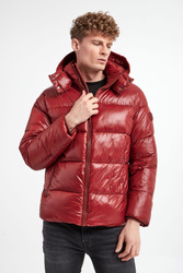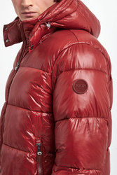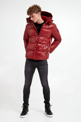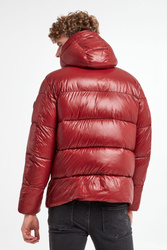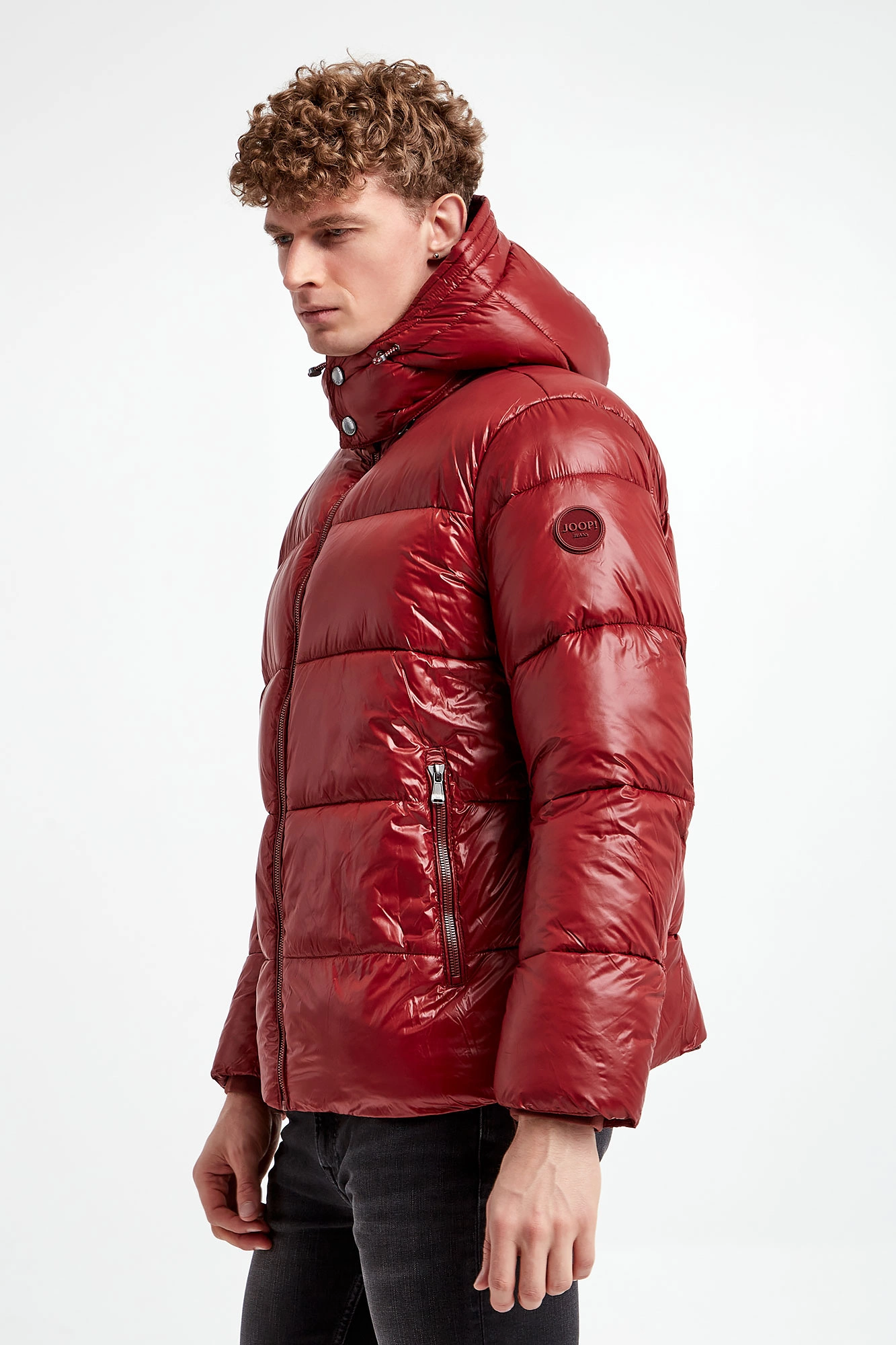 Kurtka z kapturem marki Joop! Jeans w ceglastym, czerwonym kolorze. Wypełnienie z syntetycznego materiału pochodzącego z recyklingu. Delikatny matowy połysk. Na całości poziome pikowania. Kaptur odpinany na zamek, regulowany za pomocą troczków. Model z dwiema kieszeniami na suwak. Na ramieniu gumowa, logowana aplikacja. Rękawy wykończone szerokim, krytym ściągaczem. Zapinana za pomocą zamka z logowaną metką na suwaku. Wewnątrz dodatkowa kieszeń. Dół kurtki regulowany. Fason typu regular.