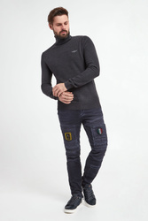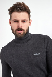Wełniany golf męski marki Aeronautica Militare w czarnym kolorze. Wykonany ze swetrowej dzianiny z drobnym splotem. Na piersi jasny haft z logo marki. Całość wykończona prążkowanym ściągaczem. Fason typu regular.