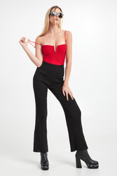 Body marki Wolford w czerwonym kolorze. Wykonane z teksturowanego, elastycznego materiału z efektem plisowania. Od tali w dół gładkie. Dekolt typu v-neck z usztywnieniem. Bezszwowe. Do noszenia na cienkich ramiączkach lub bez. Fason typu slim.