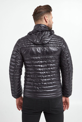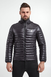 Pikowana kurtka marki Karl Lagerfeld w czarnym kolorze. Model pochodzi z linii "Karl Cares", która wspiera zrównoważoną modę. W zestawie odpinany kaptur. Fason slim. Z boku nadruk z wizerunkiem założyciela marki. Zapinana za pomocą zamka z sygnowaną zawieszką. Kołnierz ze stójką. Dwie boczne, zamykane kieszenie. Proste rękawy zakończone ściągaczami.