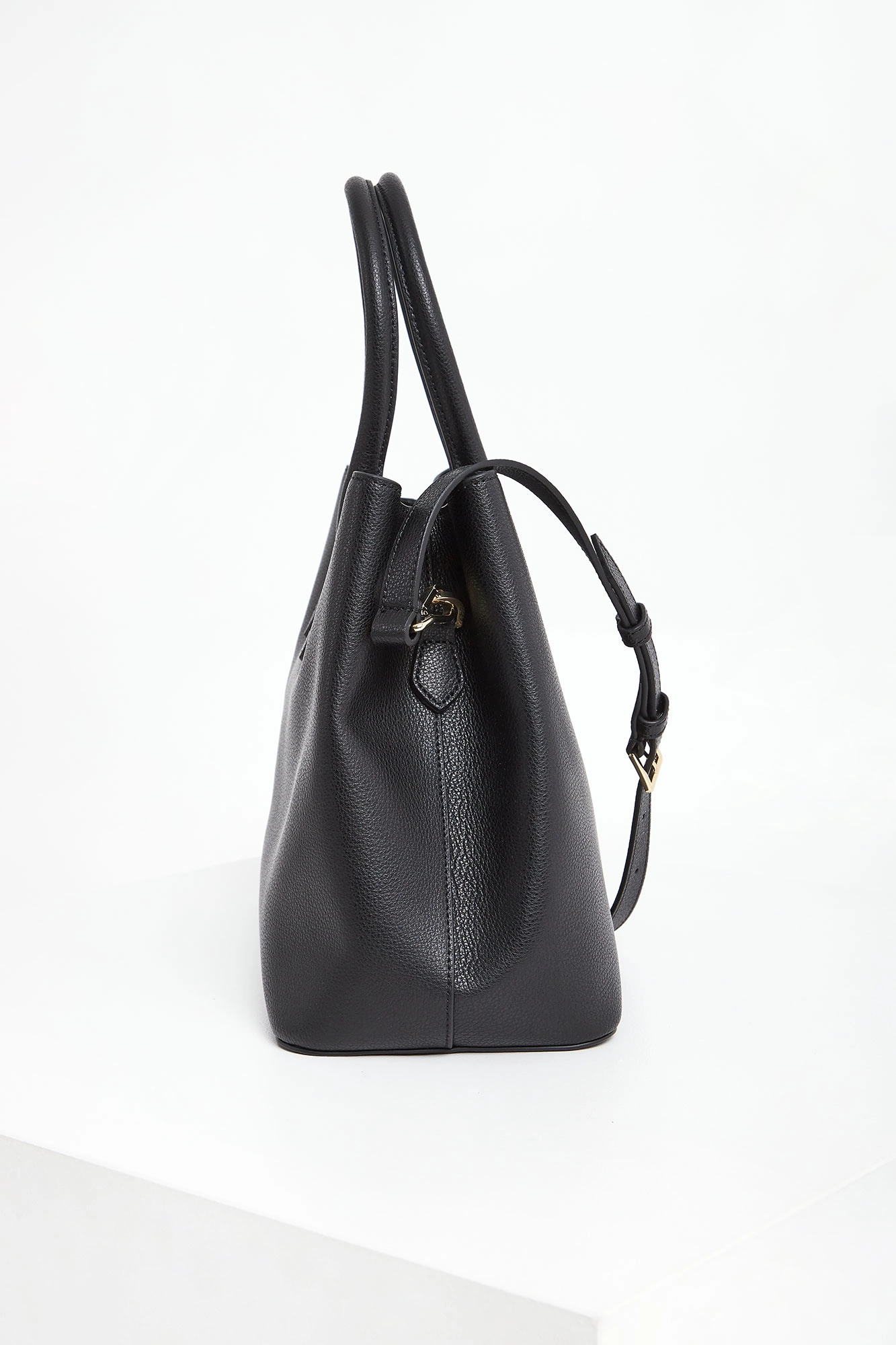 Torebka marki Patrizia Pepe w beżowym kolorze. Typu shopper. Jednokomorowa. Wykonana z młotkowanej skóry cielęcej. Z przodu tłoczona nazwa marki. Zapinana na magnetyczne napy. W środku przegródka na zamek oraz dodatkowe kieszenie. Do noszenia na okrągłych rączkach bądź na odpinanym, regulowanym pasku.