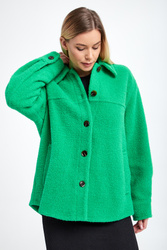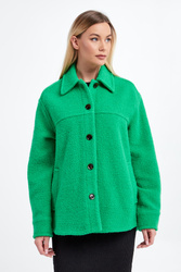 Kurtka koszulowa marki Samsøe Samsøe w kolorze zielonym. Zapinana z przodu na guziki i przy mankietach. Model z kołnierzem. Dwie boczne, wsuwane kieszenie. Tył dłuższy i zaokrąglony. Wykonana z wełny z filcowaną powierzchnią. Fason regular.