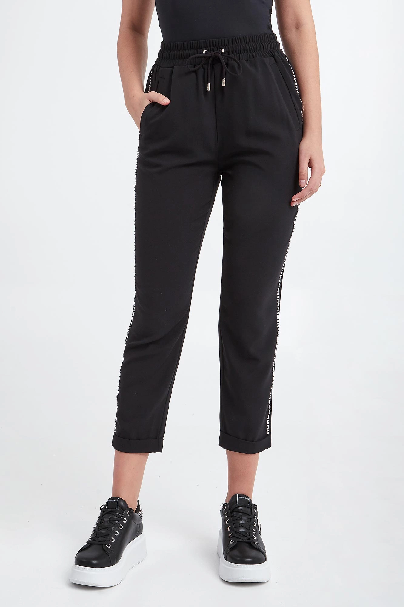 - Cyrkonie wzdłuż nogawek.