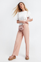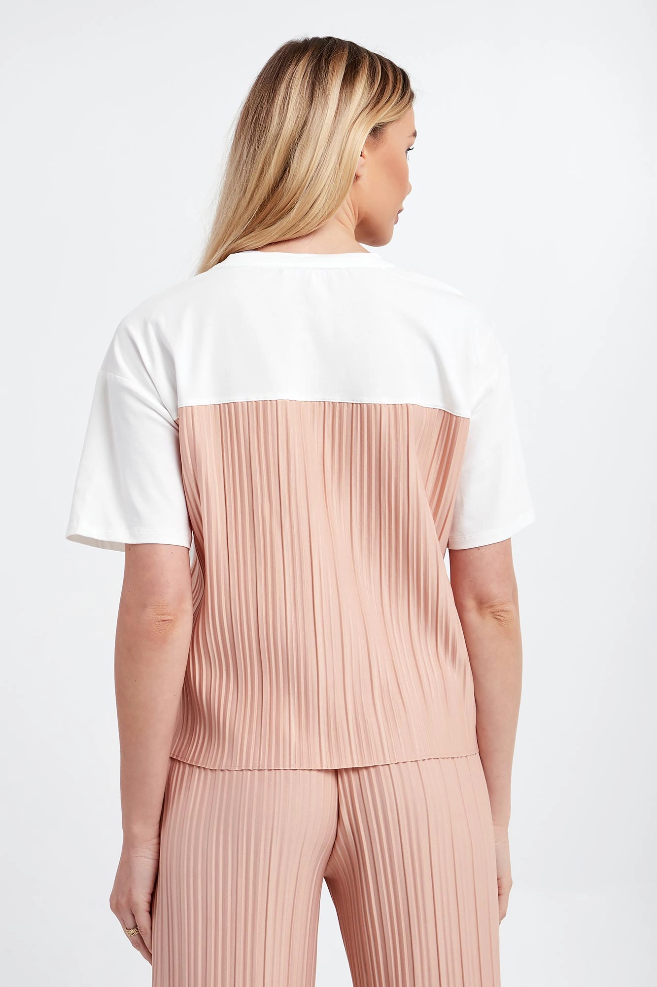 - Różowa wstawka z plisowaniem na plecach.