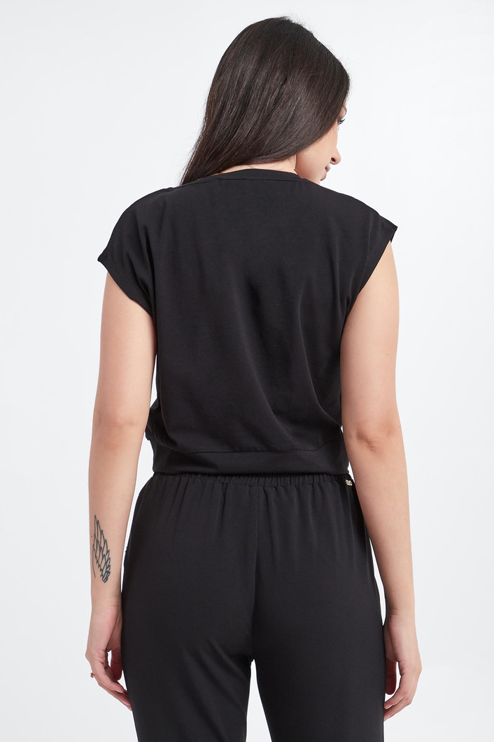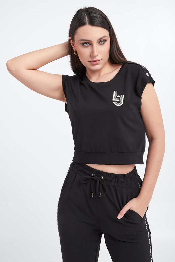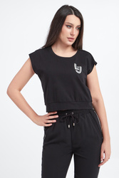 - Na piersi nadruk z kryształkami tworzący nazwę marki.