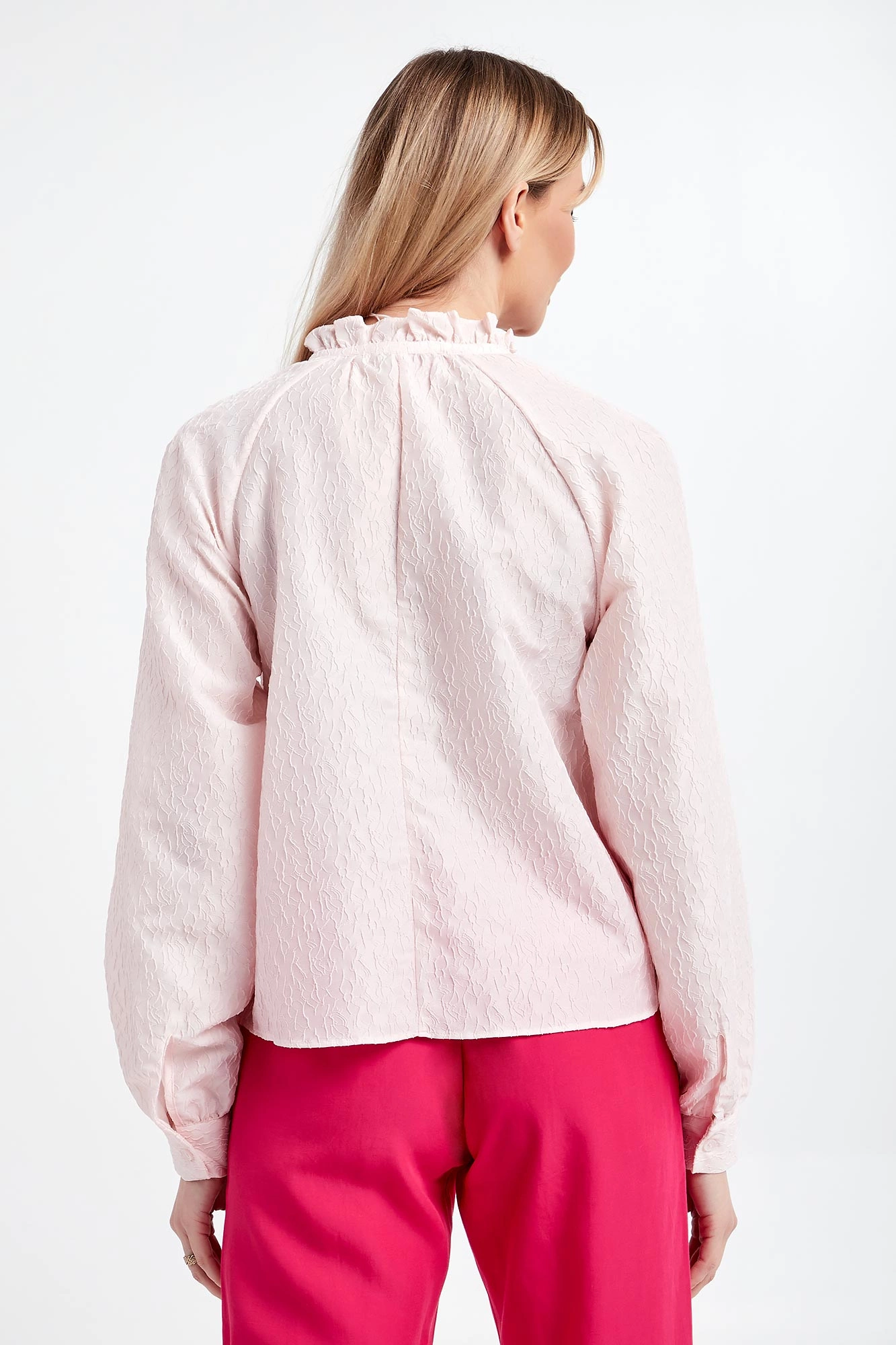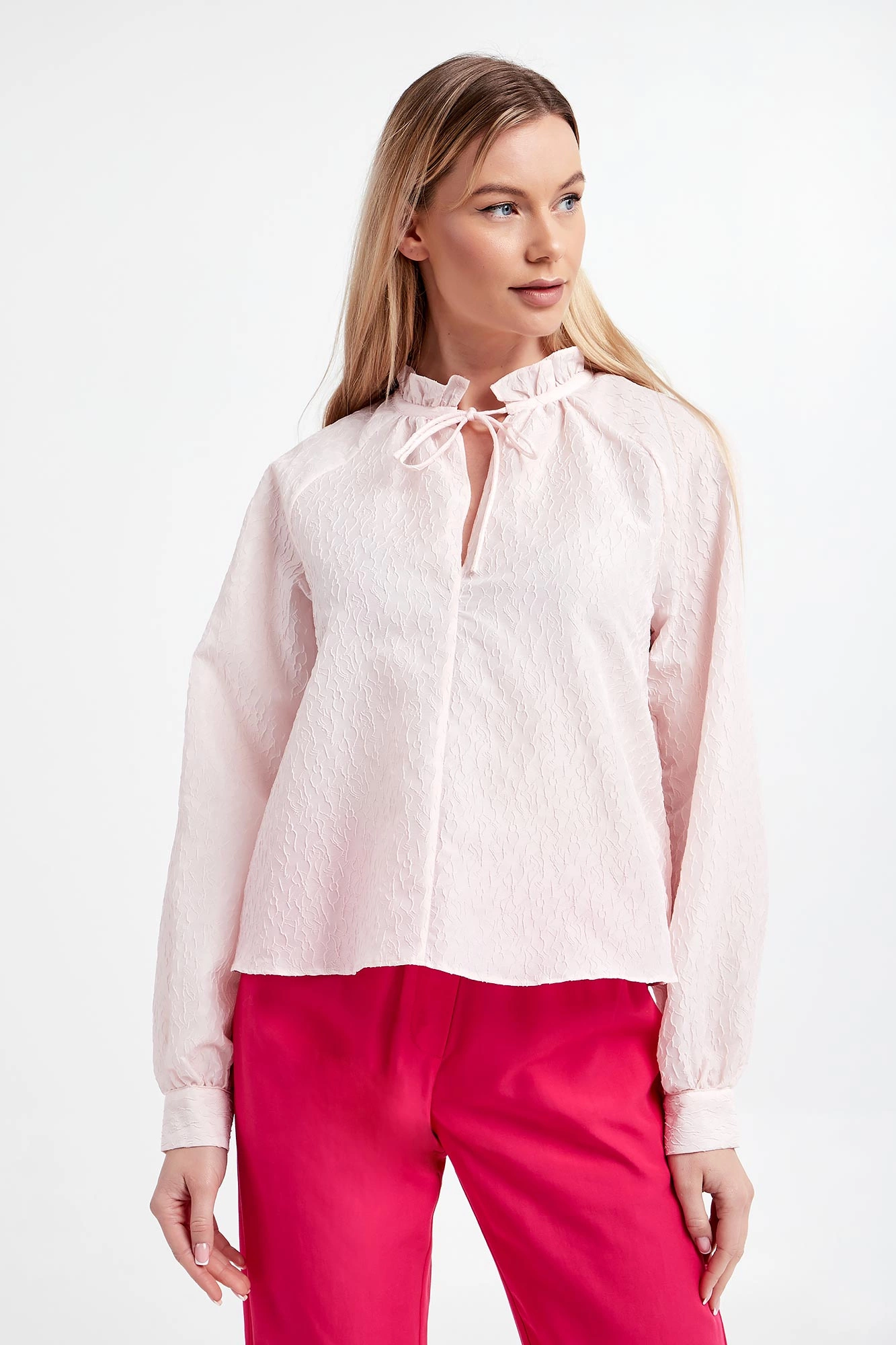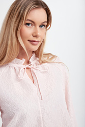 - Wiązany, marszczony kołnierzyk z falbaną.