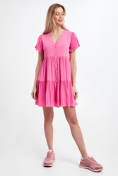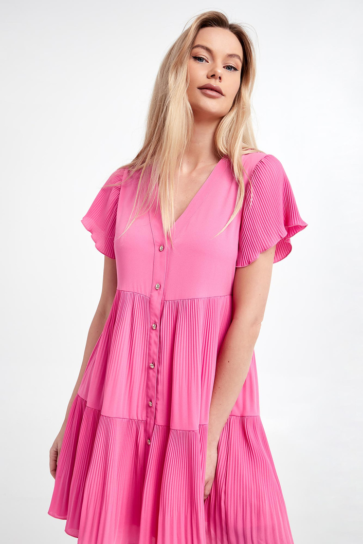 Modelka na zdjęciu, przy wzroście 174 cm, ma na sobie rozmiar 40, który odpowiada polskiemu rozmiarowi 36.