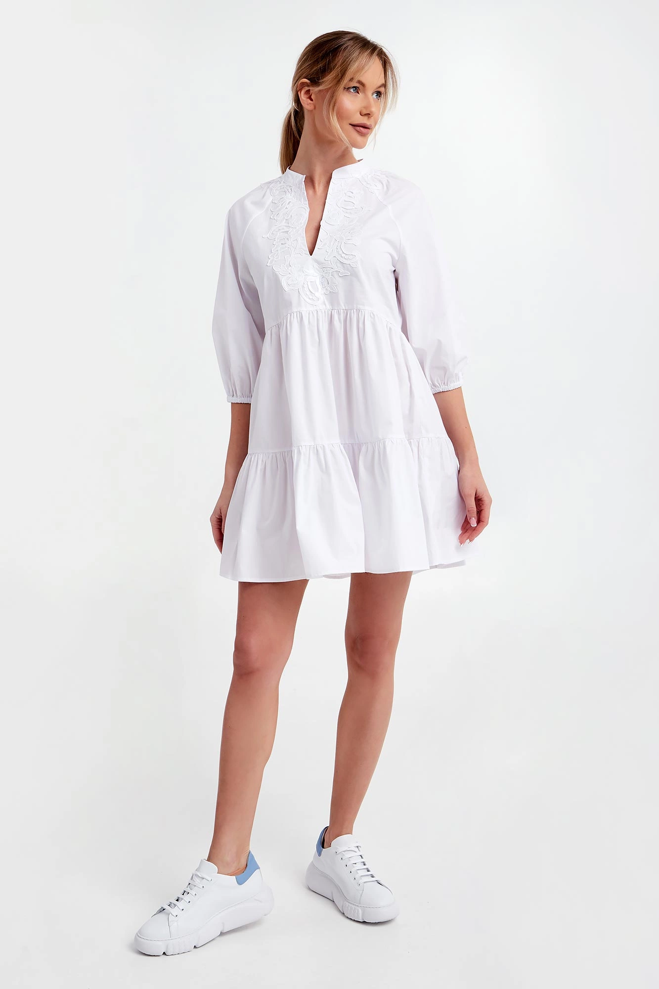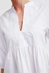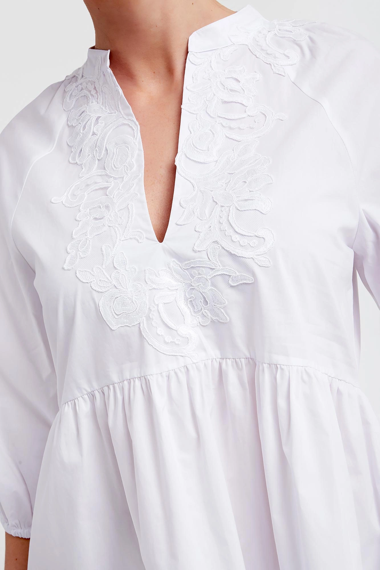 - Dekolt wykończony koronką.