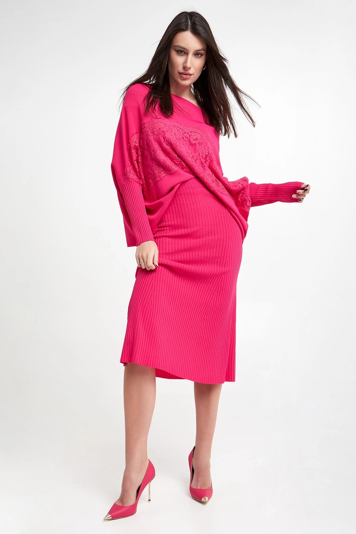 Modelka na zdjęciu, przy wzroście 177 cm, ma na sobie włoski rozmiar 40, który jest odpowiednikiem polskiego rozmiaru 36.