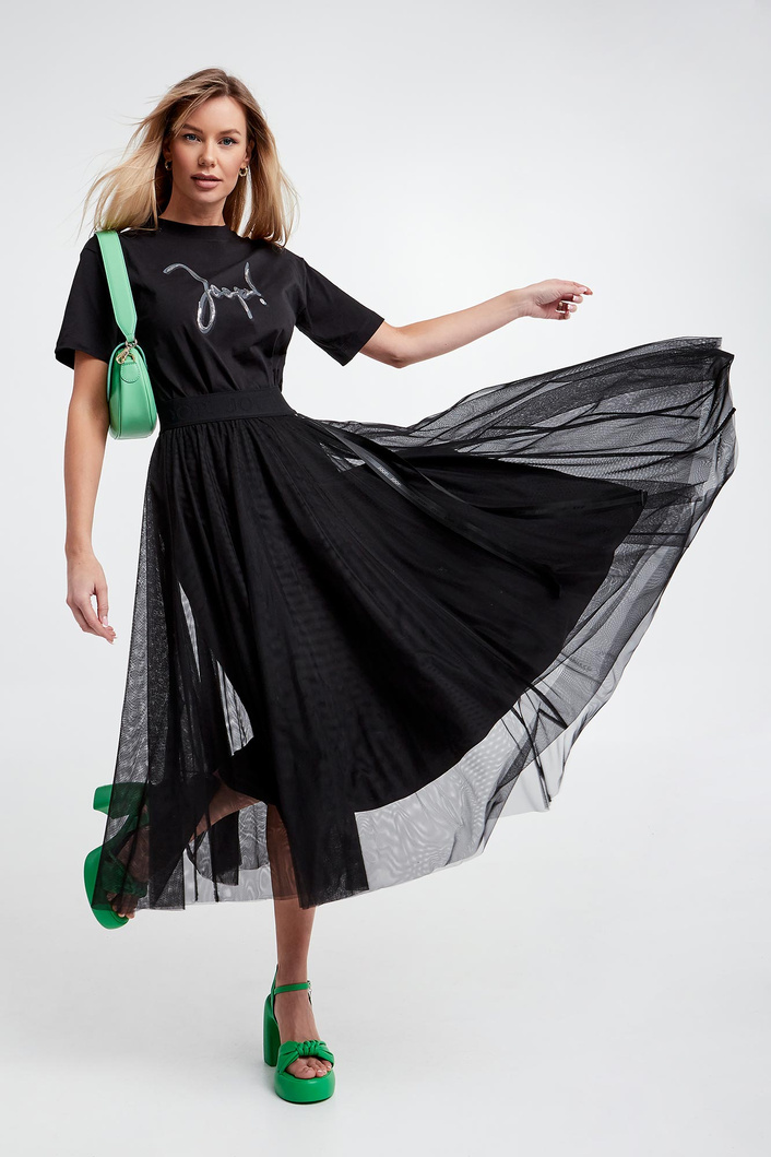 - Nadruk z nazwą marki i cekinami.