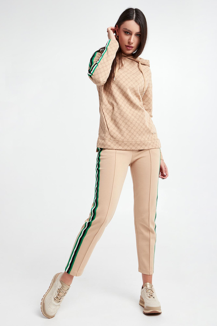 - Przeszycie wzdłuż nogawek imitujące kant.