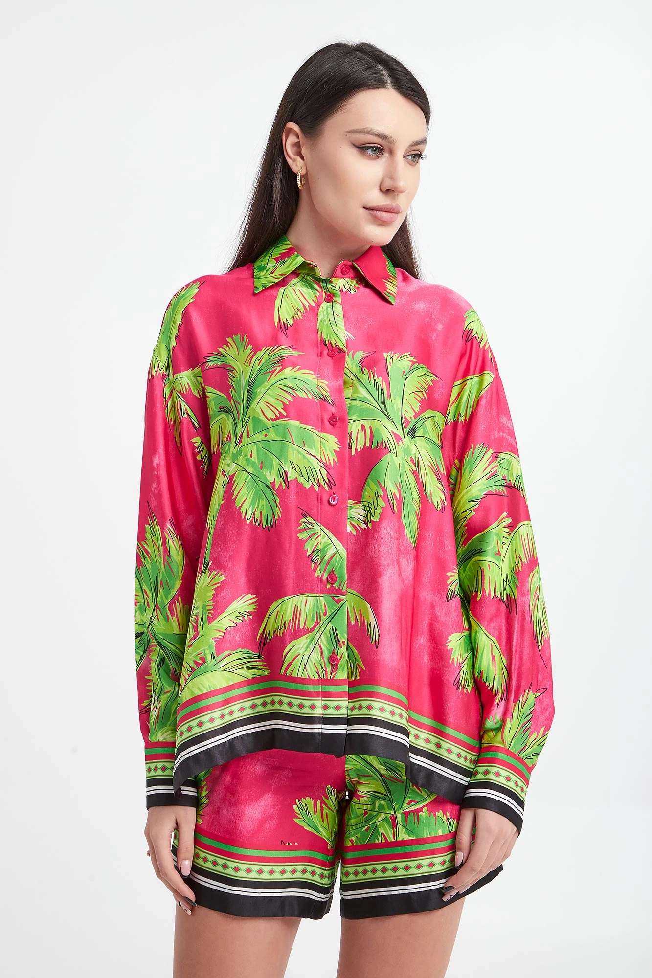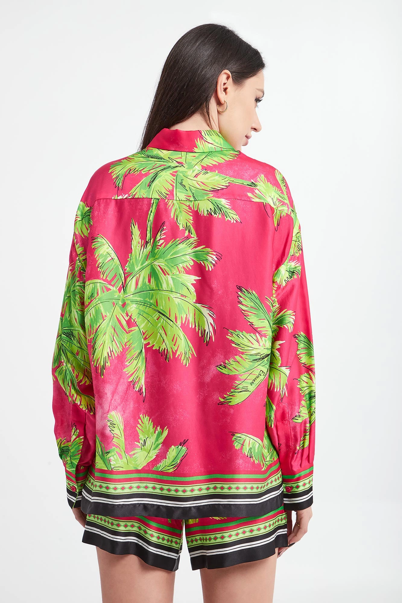 - Na całości nadruk z motywem palm.