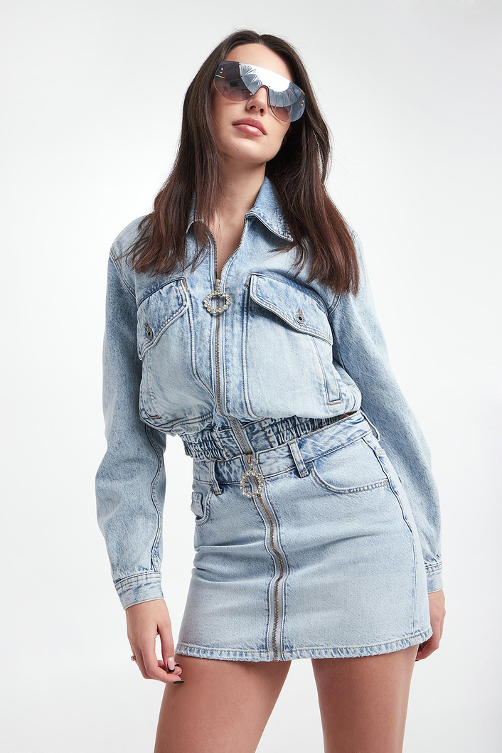 - Biżuteryjny, okrągły suwak z kryształkami.