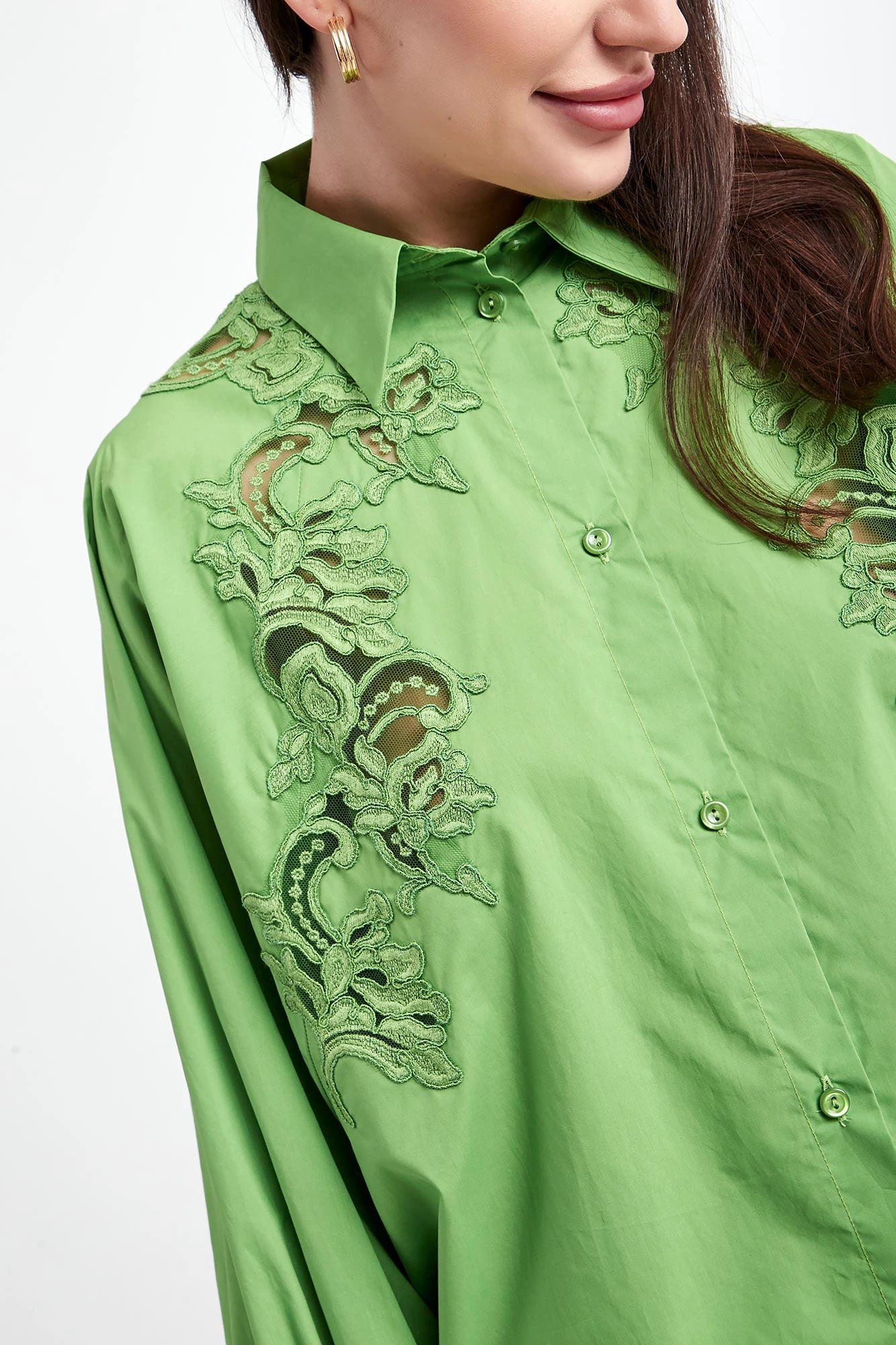 - Z przodu haftowane, ażurowe wstawki.
