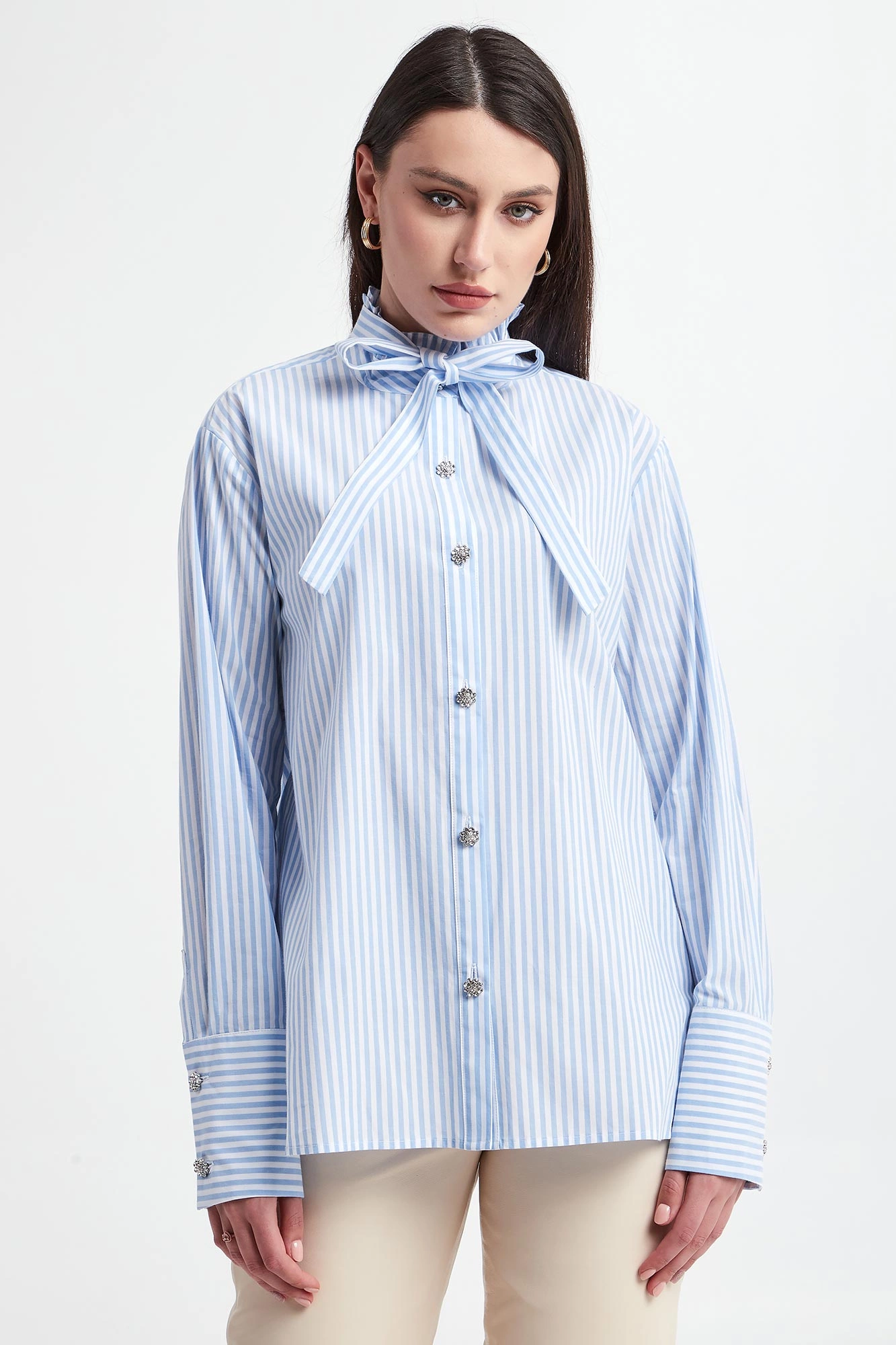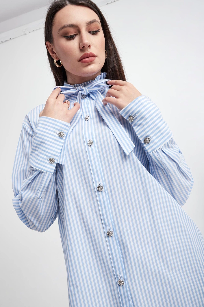 - Zapinana na biżuteryjne guziki w kształcie kwiatów z kryształkami.