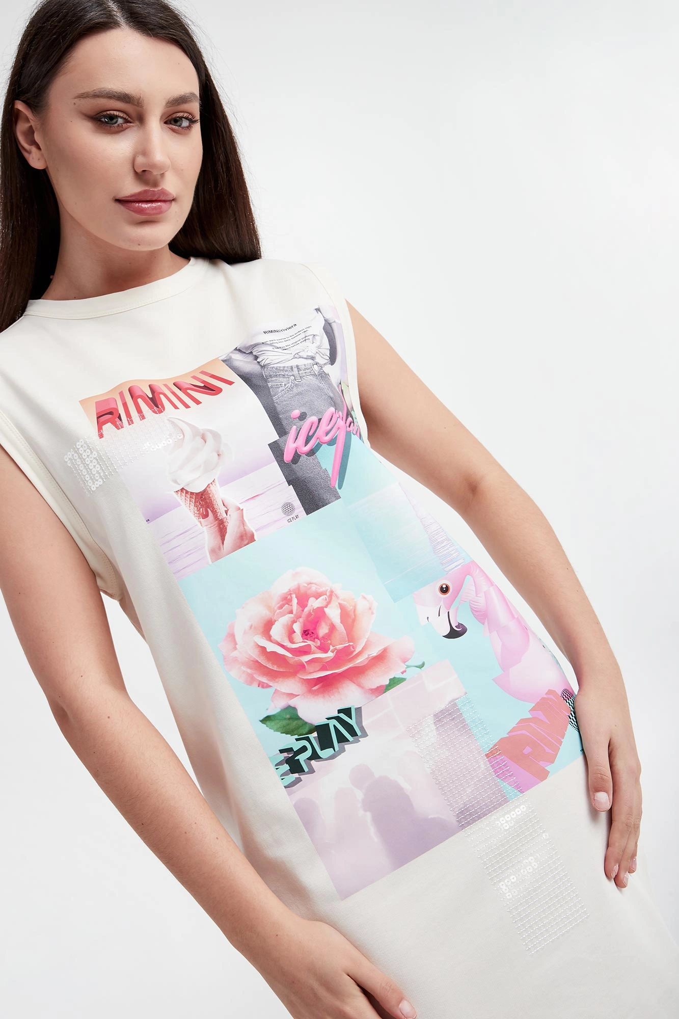 - Na całości wzór w postaci kolażu zdjęć w pastelowych kolorach.