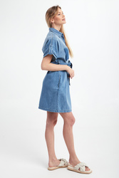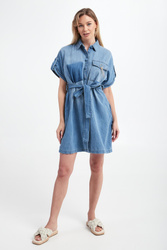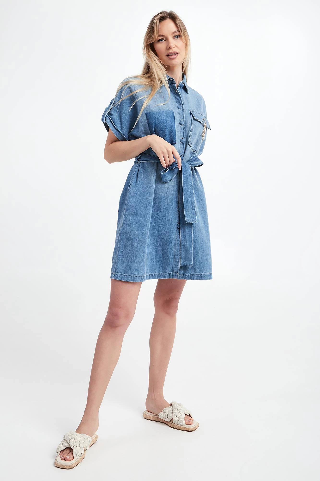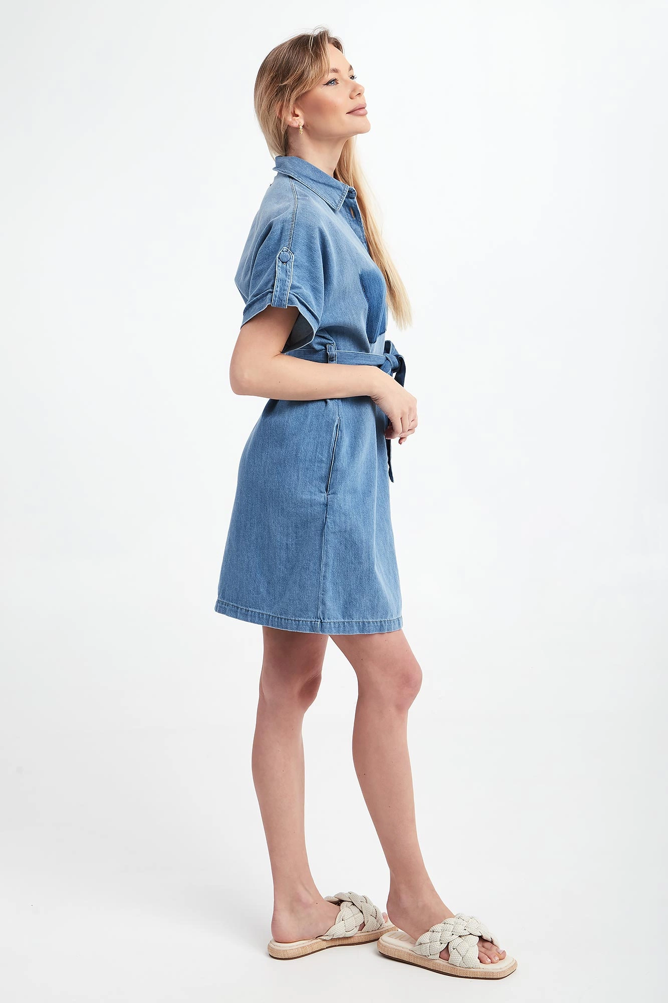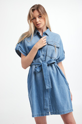 Sukienka wykonana z grubszego jeansu rozmiar S dość obszerny, ale ładnie się prezentuje - polecam