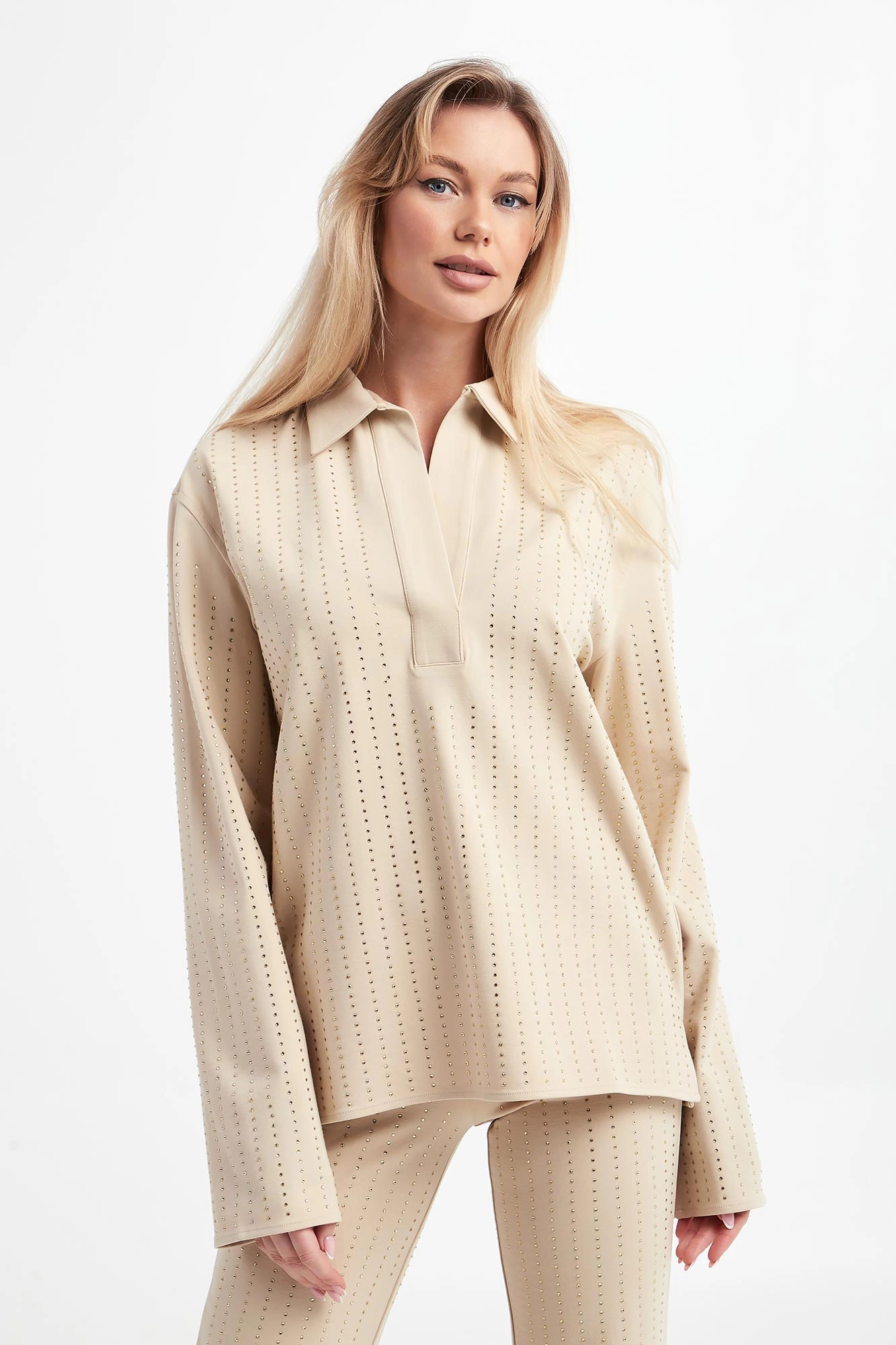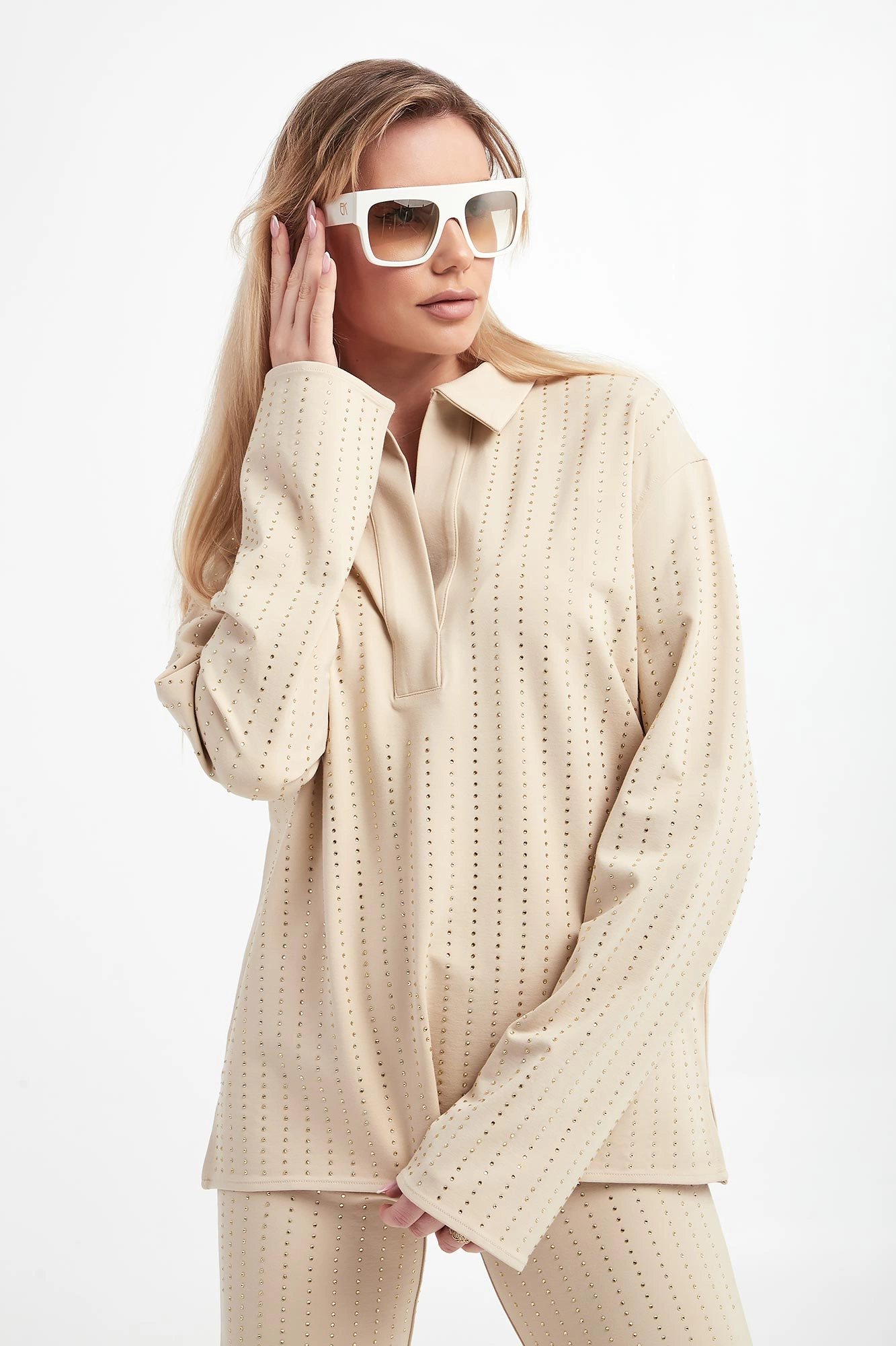 - Wzór w postaci pionowych pasków z cyrkonii.